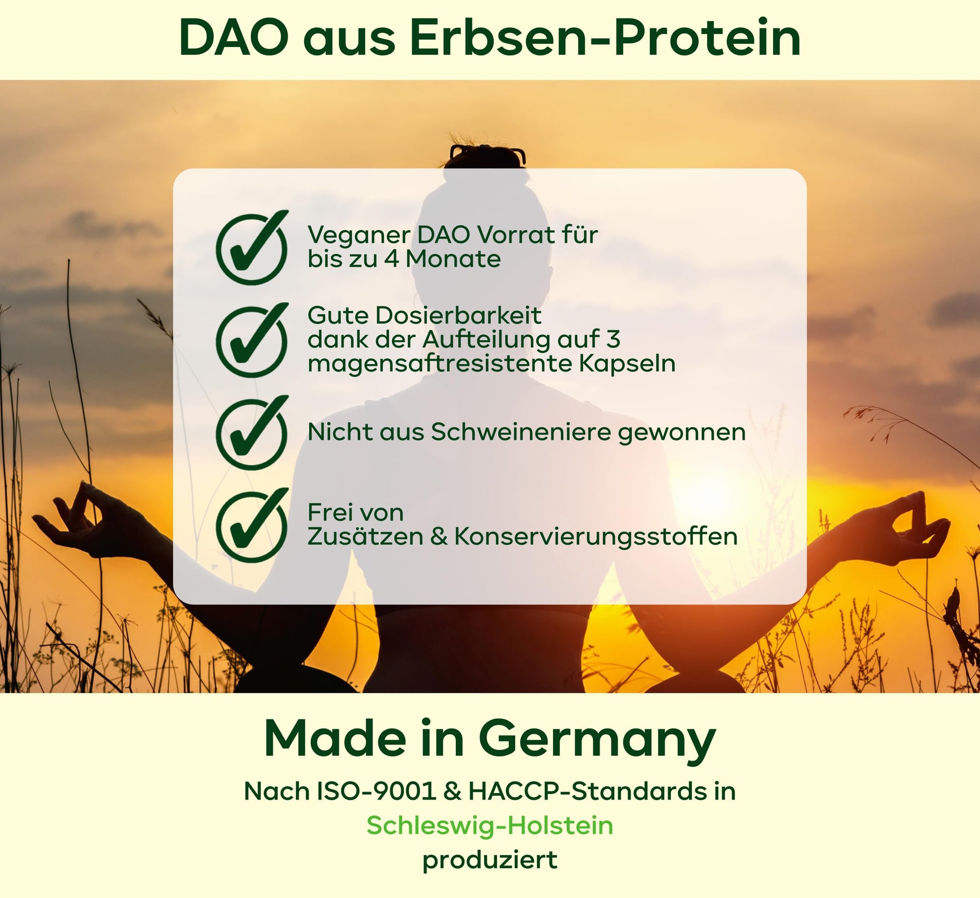120 DAO kapsulas — 1 000 000 HDU dienā — ideāla deva ar 333 333 HDU/kapsulā (1 līdz 3 kapsulas dienā) — vegāns DAO — DAO enzīms no zirņiem
