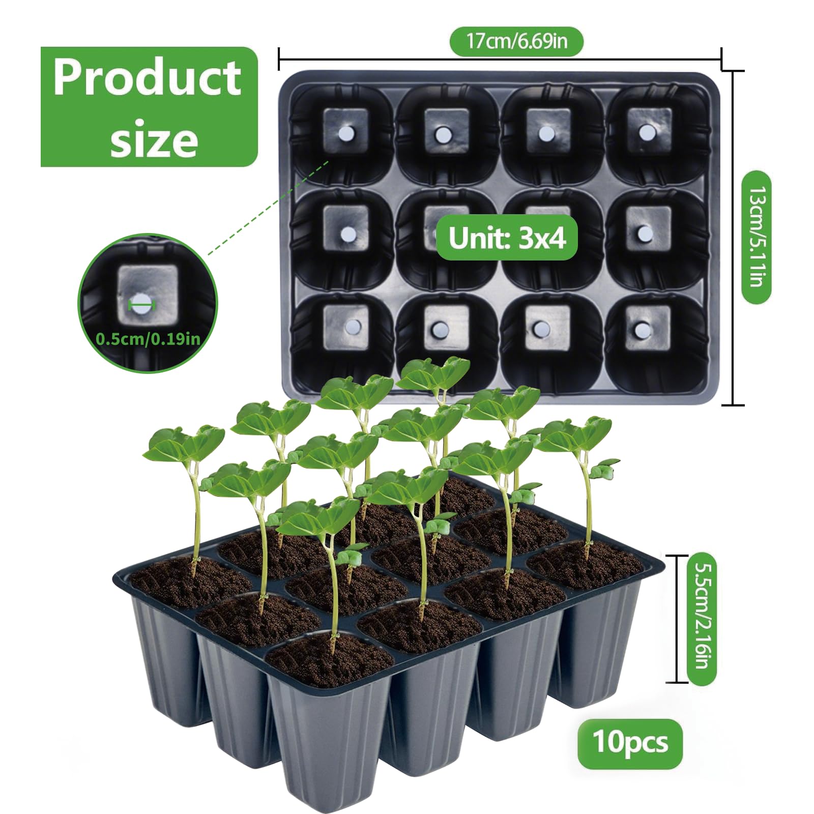 - 【Mitruma kontrole】 Sēklu paplāte audzēšanai, katras vienības apakšā ir drenāžas caurumi, lai pareizi novadītu ūdeni. Tas novērš sakņu bojājumus, ko rada pārmērīga laistīšana, un vienlaikus veicina sakņu asinsriti. Stādu stādīšanas paplātes ļauj labāk kultivēt augus.