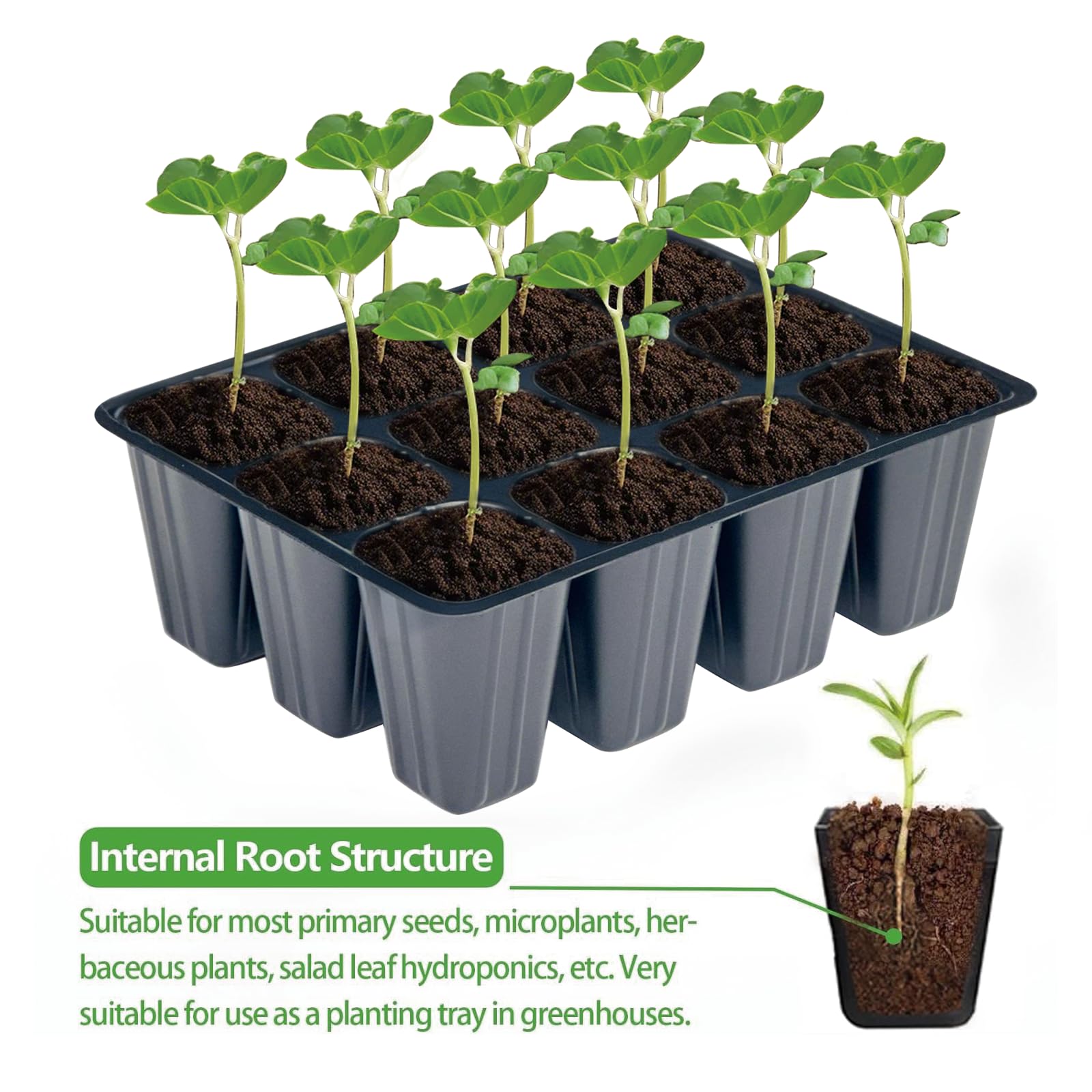 - 【Plašs pielietojums】Katrs šūnas apakšējais caurums apvieno efektīvu ventilāciju un drenāžu. Stādu stādīšanas paplātes. Piemērotas lielākajai daļai primāro sēklu, mikroaugu, garšaugu, salātu lapu hidroponikas u. c. stādīšanai. Ne tikai laba dāvana dārzniekiem, audzētājiem un lauksaimniekiem, bet arī ļoti piemērotas ģimenes stādīšanai.