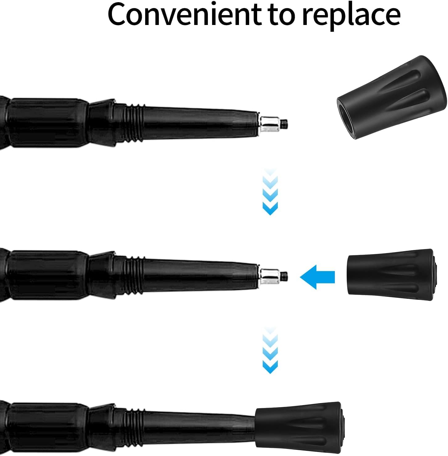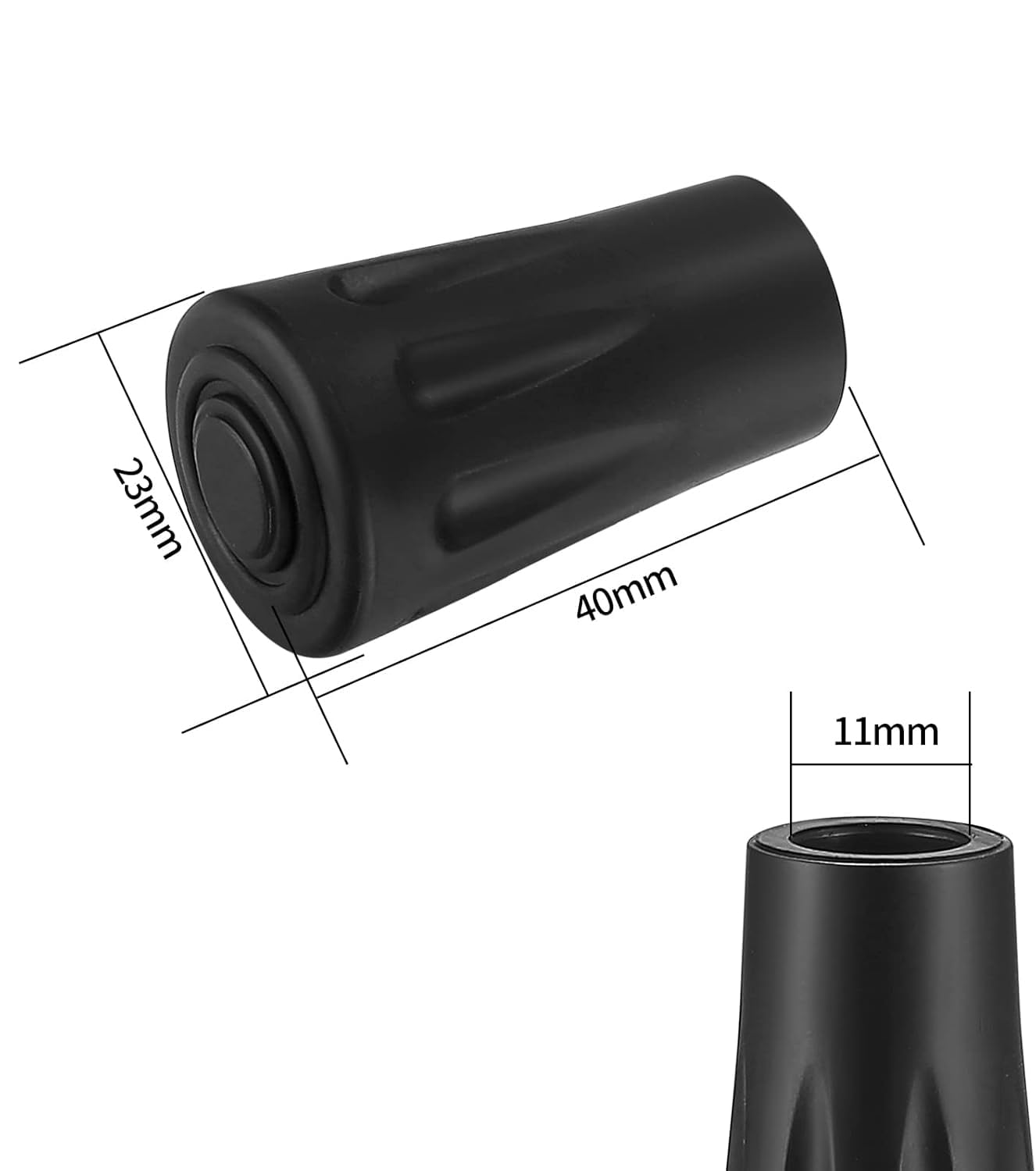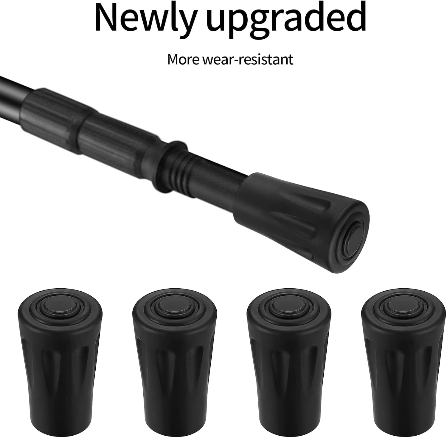 - Praktisks dizains: Gumijas aizsarga apaļais dizains palielina saskares laukumu ar zemi, un apakšējais vītņotais gredzens nodrošina lielāku saķeri un vilkmi, kas var novērst slīdēšanu, uzlabot stabilitāti un uzlabot iešanas drošību.