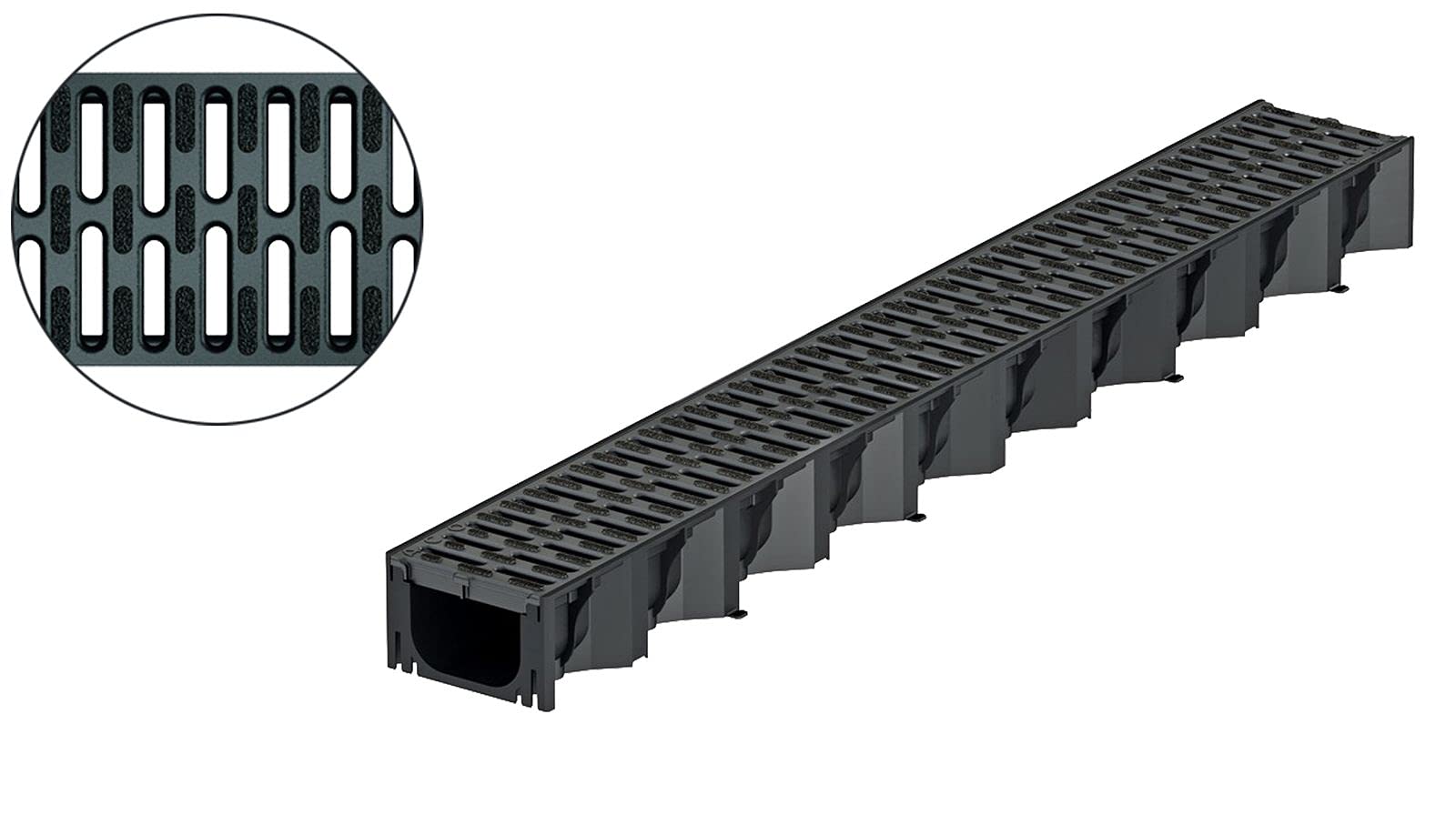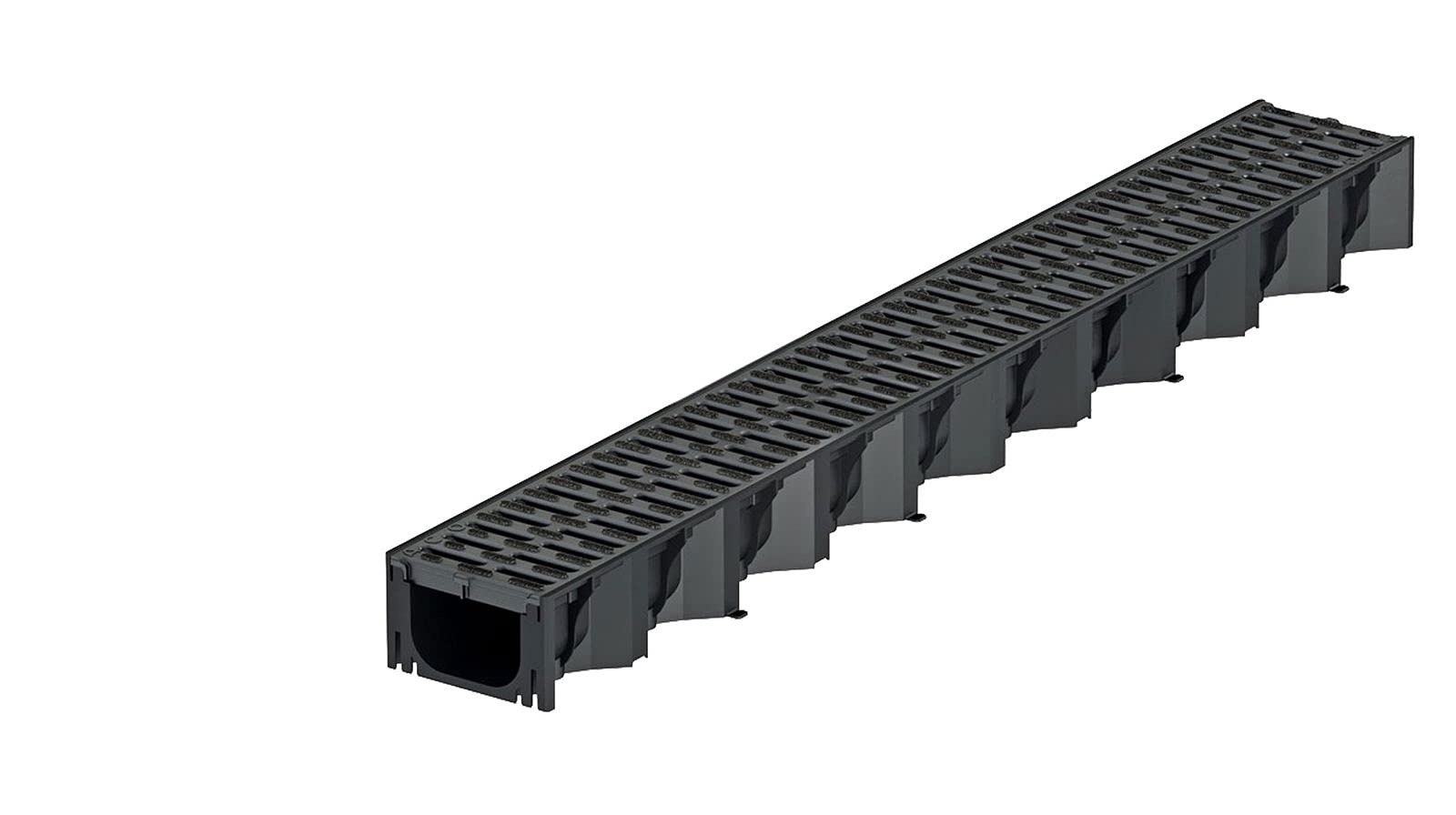 Pārstrādājamā plastmasa un inovatīvais ražošanas process padara notekcaurules korpusu vieglu, izturīgu un triecienizturīgu. Šūnveida struktūra sānu sienā nodrošina notekcaurules korpusam augstu stabilitātes līmeni. Tāpēc sānu iestrādāšana betonā ir nepieciešama tikai tad, ja kanāls tiek izmantots satiksmei. Virsmas pārklājumu var apstrādāt tieši. Plastmasas režģis ar Microgrip pārklājumu nodrošina neslīdošu pārklājumu drenāžas korpusam, jo režģis papildus pārbaudītajai izciļņu konstrukcijai ir aprīkots ar daudziem nelieliem paaugstinājumiem, kas nodrošina drošu stāvēšanu pat augstā mitruma apstākļos.