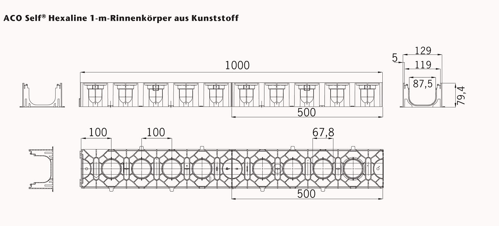 - Piegādes apjoms: 1 gab. ACO Hexaline 2.0 drenāžas kanāls ar Microgrip spraugveida režģi