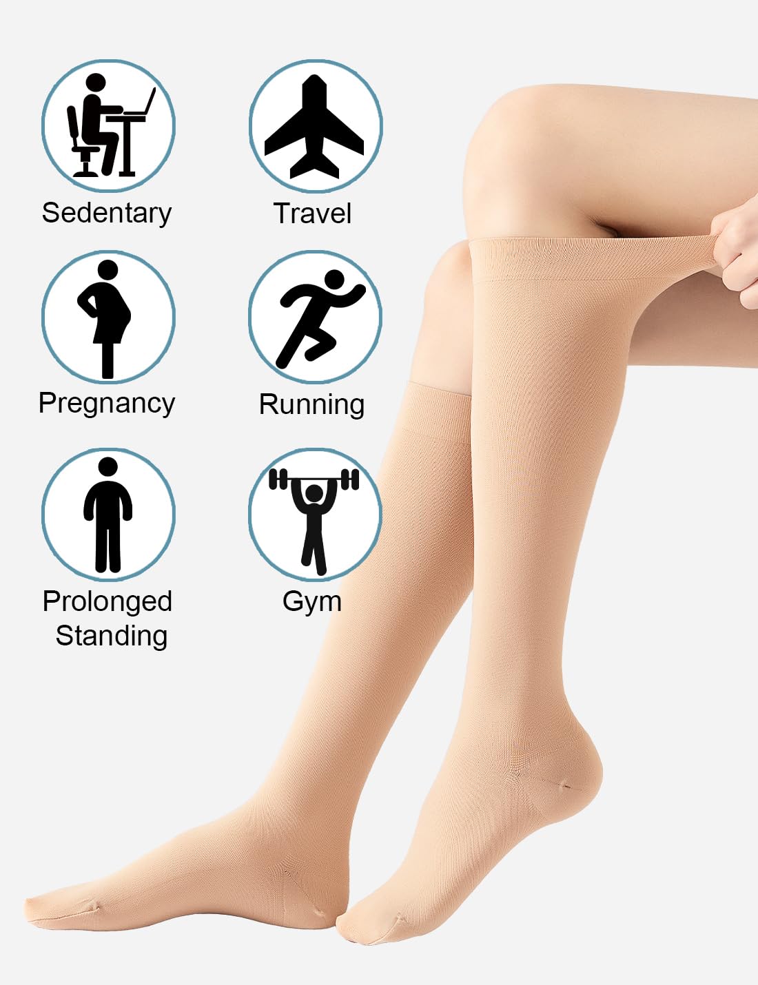 - 【Augstas kvalitātes profesionālas kompresijas zeķes (unisex)】4 līmeņu spiediena gradācija veicina labāku asinsriti, un spiediena vērtība 20–30 mmHg (medicīniskais II spiediena līmenis) var efektīvi mazināt pietūkumu, sāpes un venozo atteci pēdās un kājās. Ideāli piemērots cilvēkiem ar varikozām vēnām, diabēta slimniekiem, grūtniecēm, operācijām, gariem lidojumiem, pietūkušām vai iekaisušām kājām un pēdām.
