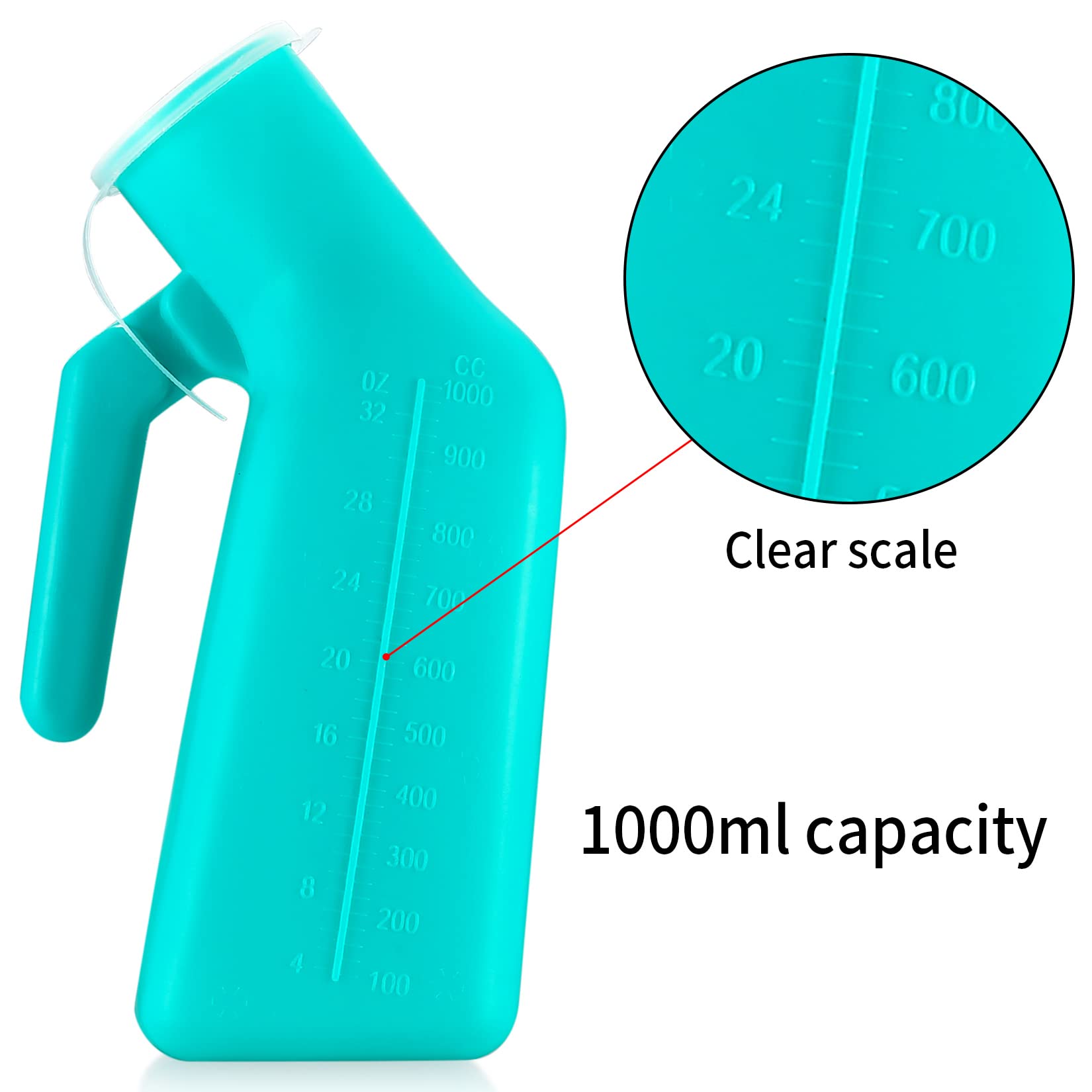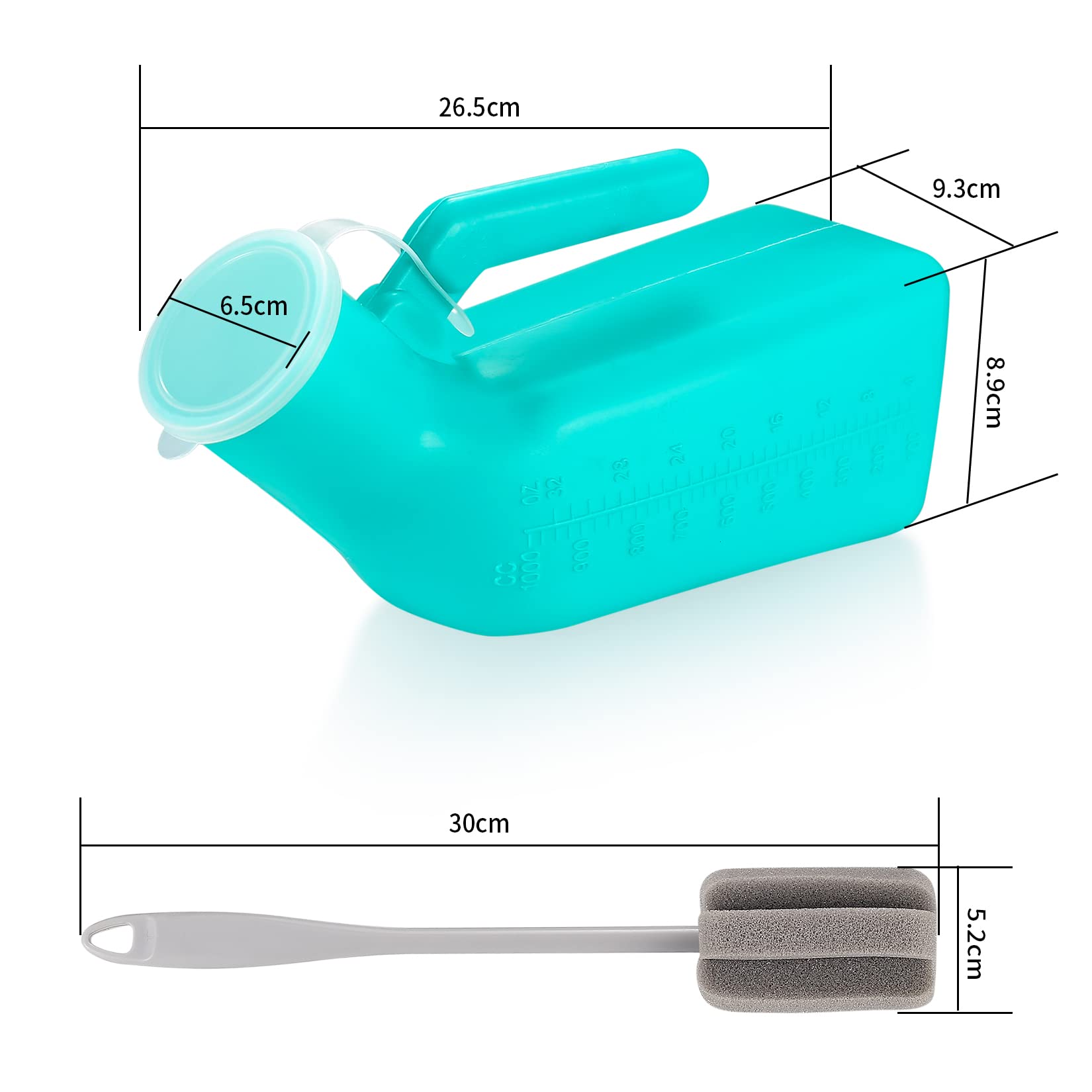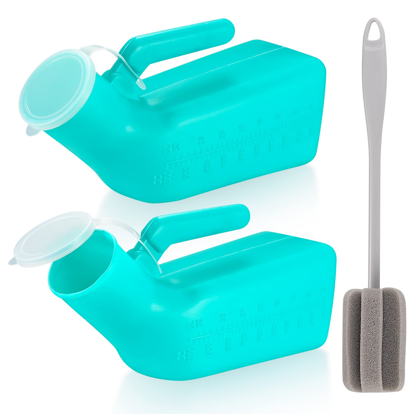 2 gab. 1000 ml urīna pudeles vīriešiem, pārnēsājama vīriešu pisuāra pudele, gultas pudele vīriešiem, urīna savākšanas pudele ar skrūvējamu vāciņu ceļojumiem, ārkārtas situācijām, gultai, kempingam, ar 1 x tīrīšanas birsti