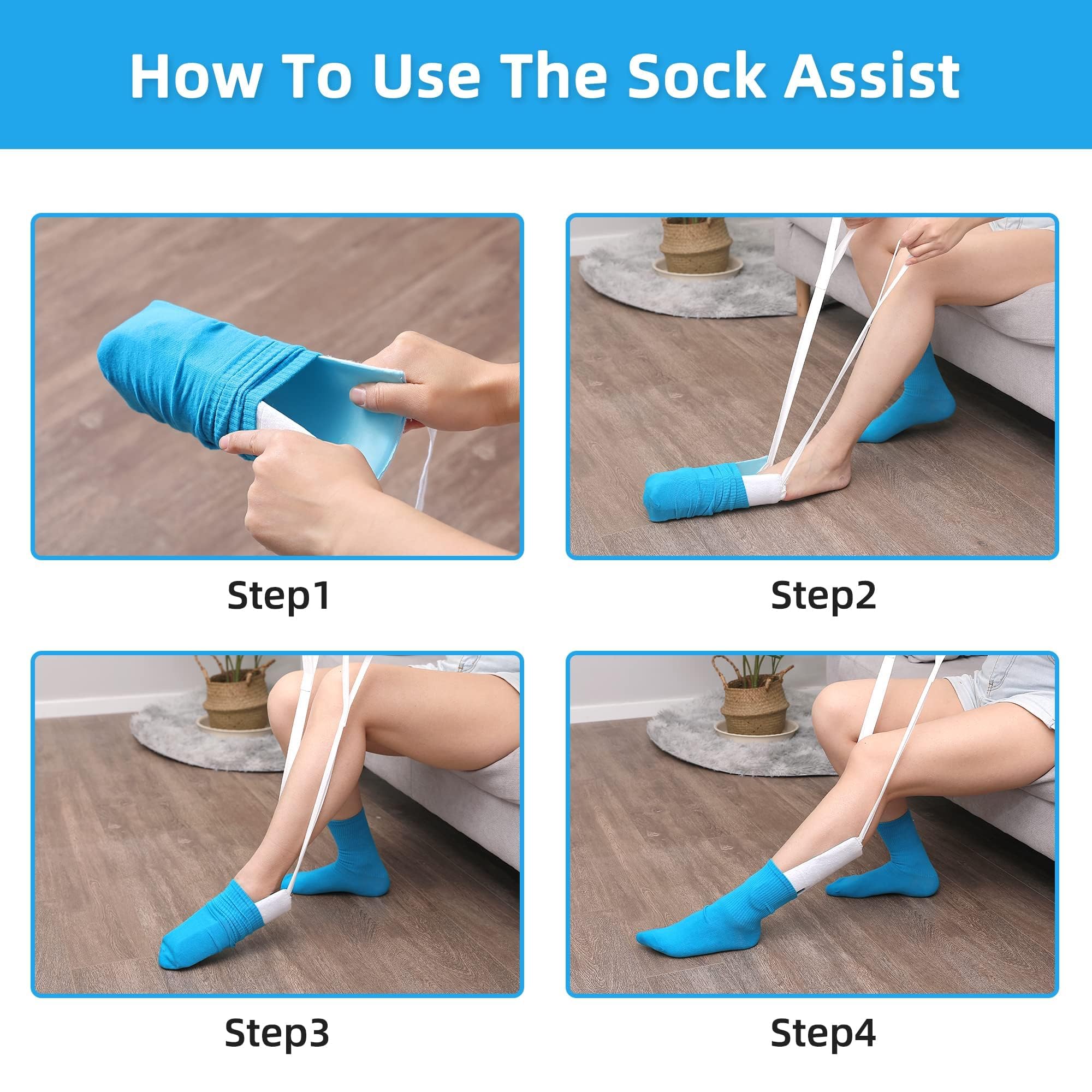 - Viegli uzvilkt: Ātrs un vienkāršs veids, kā uzvilkt un novilkt zeķes, viegli lietojams; Novietojiet zeķi uz slīdņu komplekta un pabīdiet kāju iekšā.
