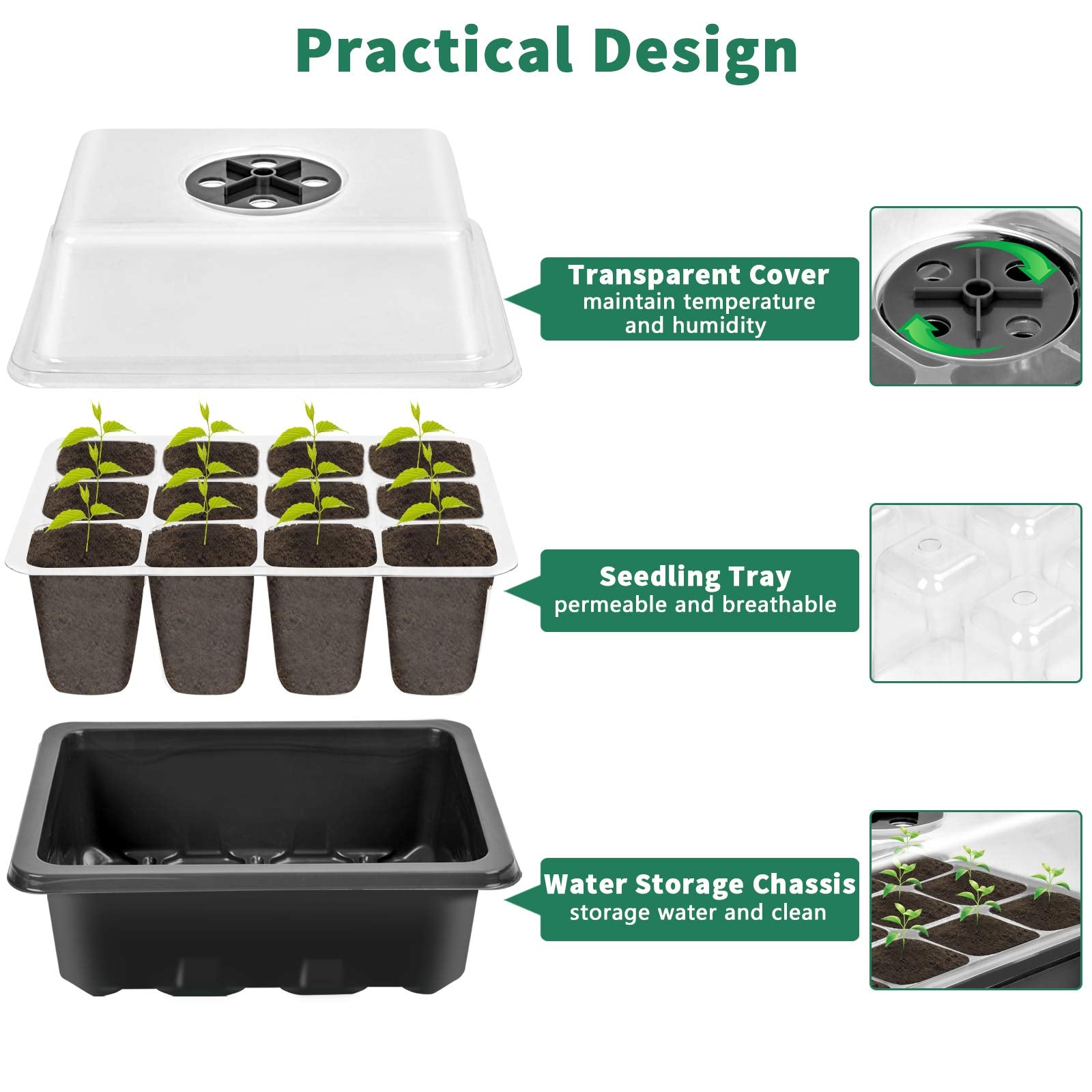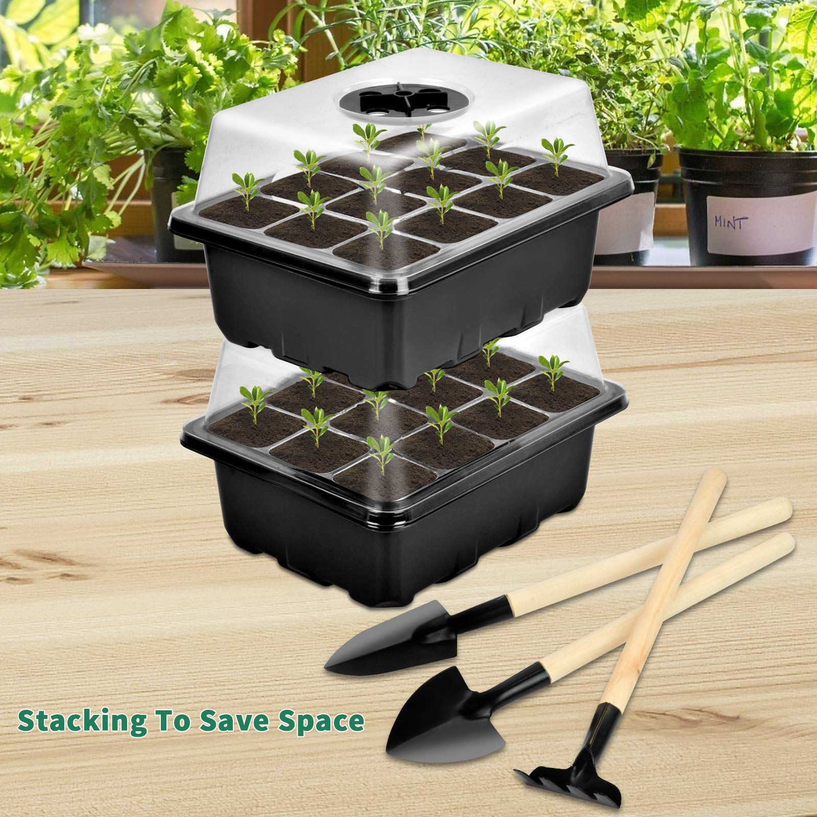 2 daļu iekštelpu siltumnīcu kultivēšanas komplekts, mini siltumnīcu kultivēšanas komplekts, kultivēšanas paplāte ar vāku, plastmasas kultivēšanas paplātes ar 3 maziem dārza instrumentiem, 12 caurumi, ideāli piemērotas sēklu dīgšanai un augu augšanai