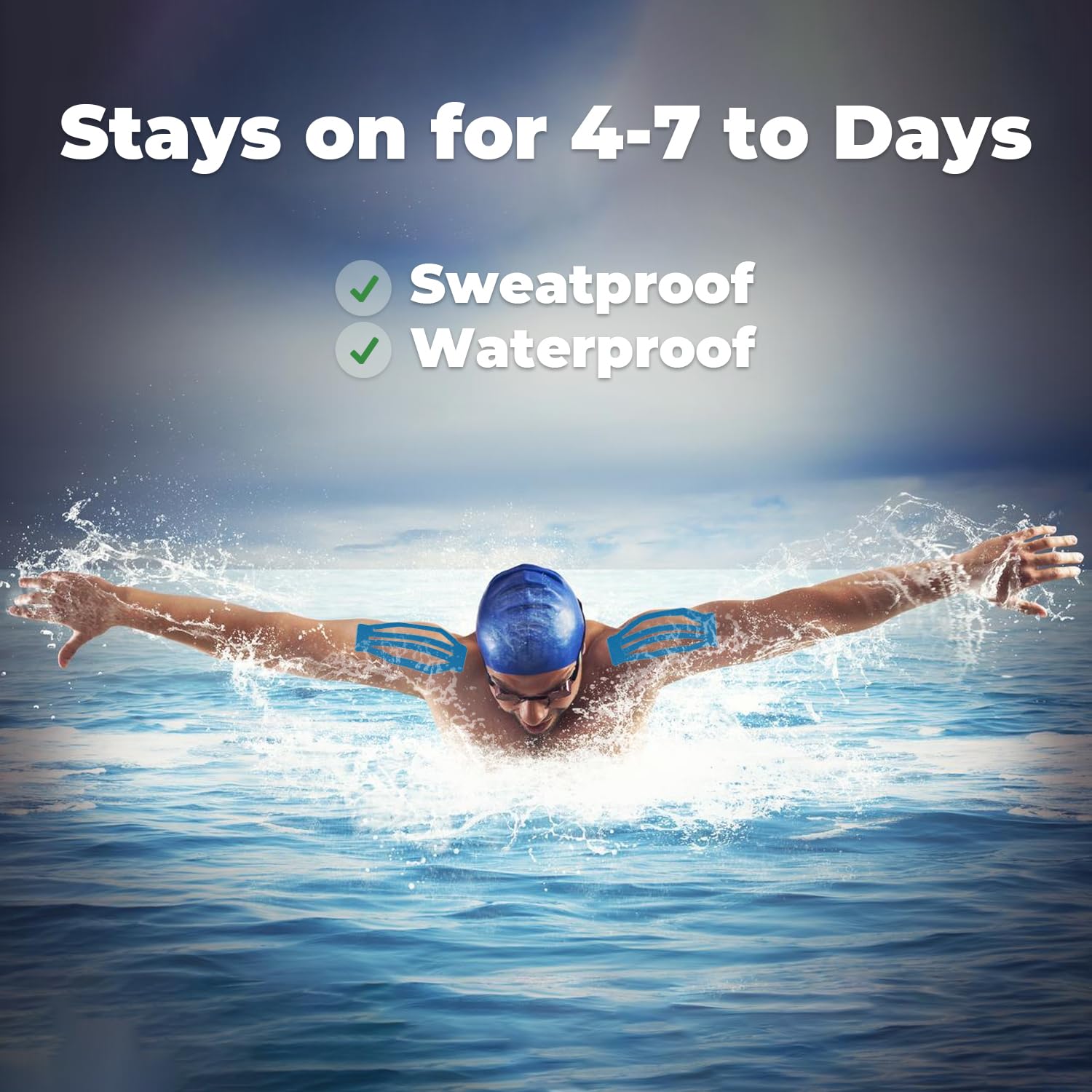 - Spēcīga līme: mūsu kineziteipi ir izgatavoti no spēcīgas un ādai draudzīgas medicīniskās akrila līmes. Šīs lentes līmes izturība ir līdz pat 7 dienām, neskatoties uz sviedriem vai ūdeni!