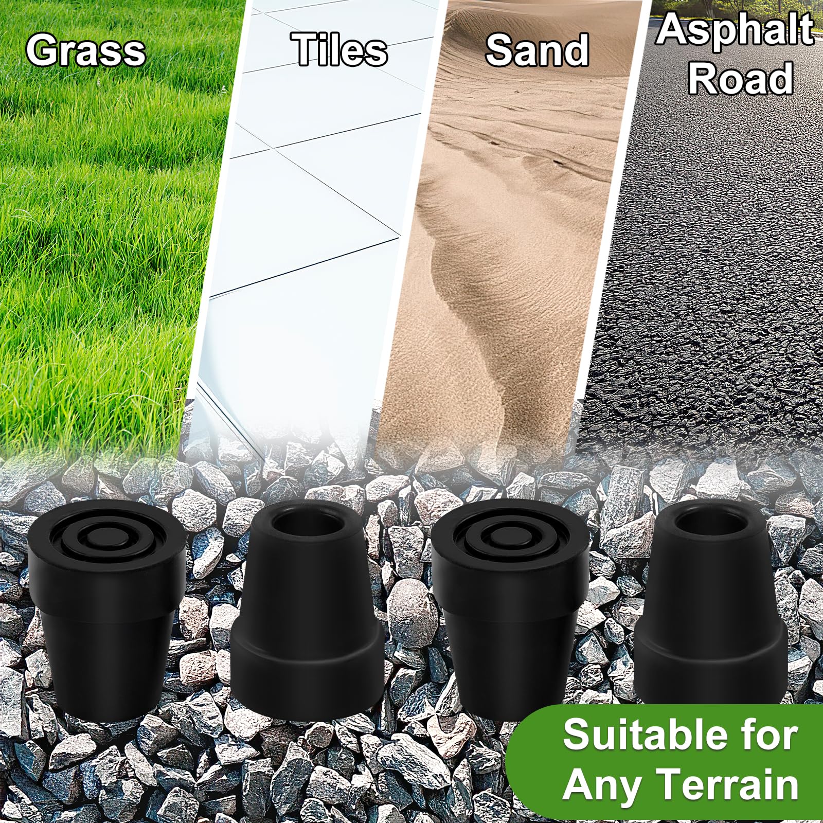 - 【Universālie kruķu piederumi】Jūs saņemsiet 4 gumijas kruķus, kas piemēroti lielākajai daļai kruķu ar 19 mm diametru. Pirms iegādes, lūdzu, ņemiet vērā sava spieķa izmēru.