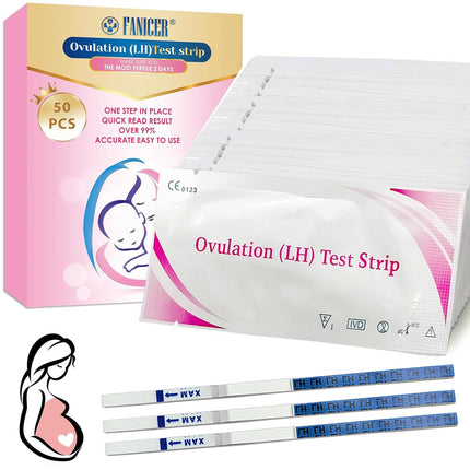 50 ovulācijas testi, optimālas jutības ovulācijas testi, ovulācijas tests 25 mIU/ml, ovulācijas testi ovulācijai, auglības tests sievietēm, viegli lietojams
