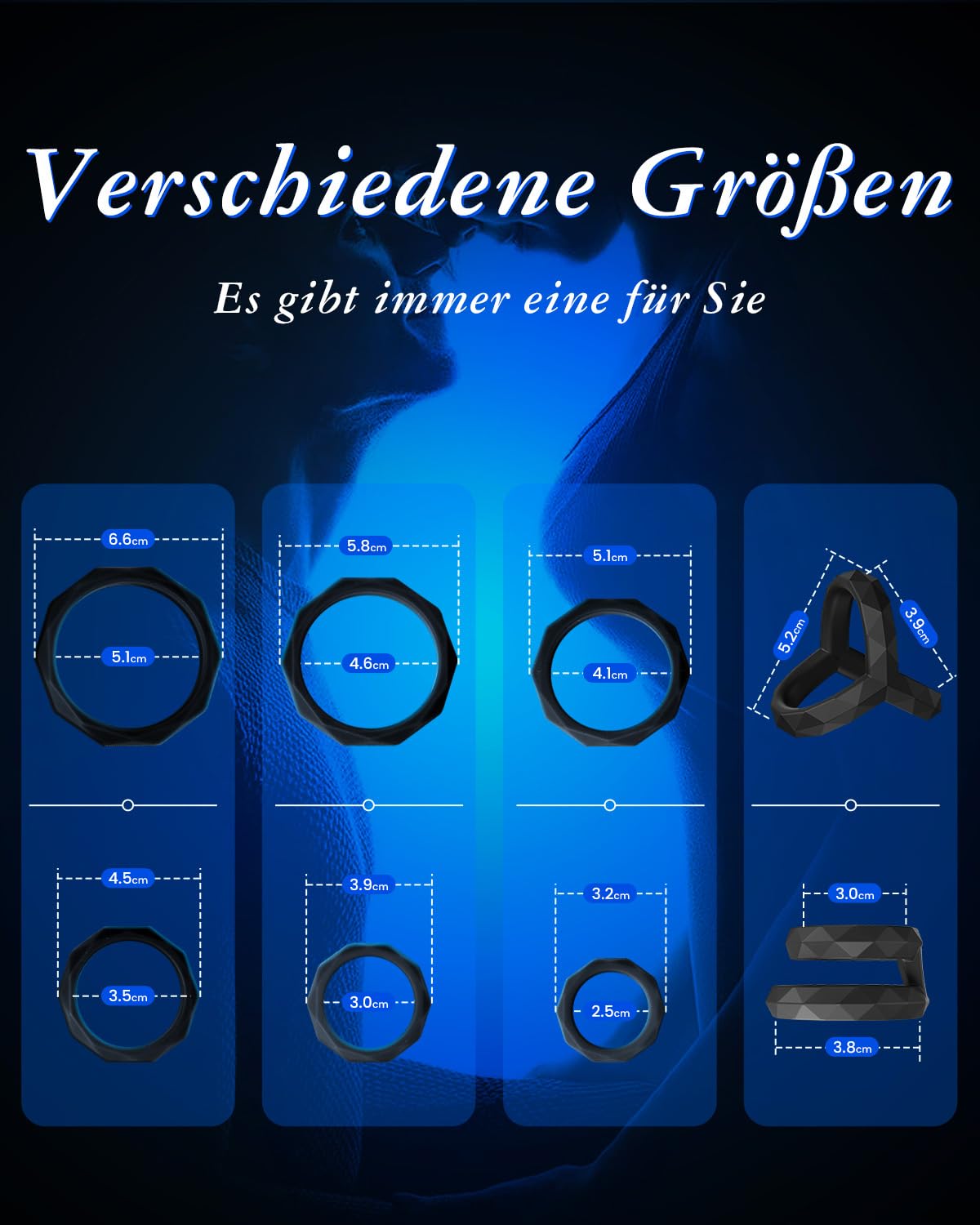 - 【Dažādu izmēru seksa rotaļlietu izvēle individuālam komfortam】Piedāvājumā ietilpst astoņi dažādu izmēru seksa rotaļlietu komplekti vīriešiem, regulējams dzimumlocekļa gredzens, kas izgatavots no augstas kvalitātes silikona, lai nodrošinātu perfektu piegulšanu un individuālu komfortu.