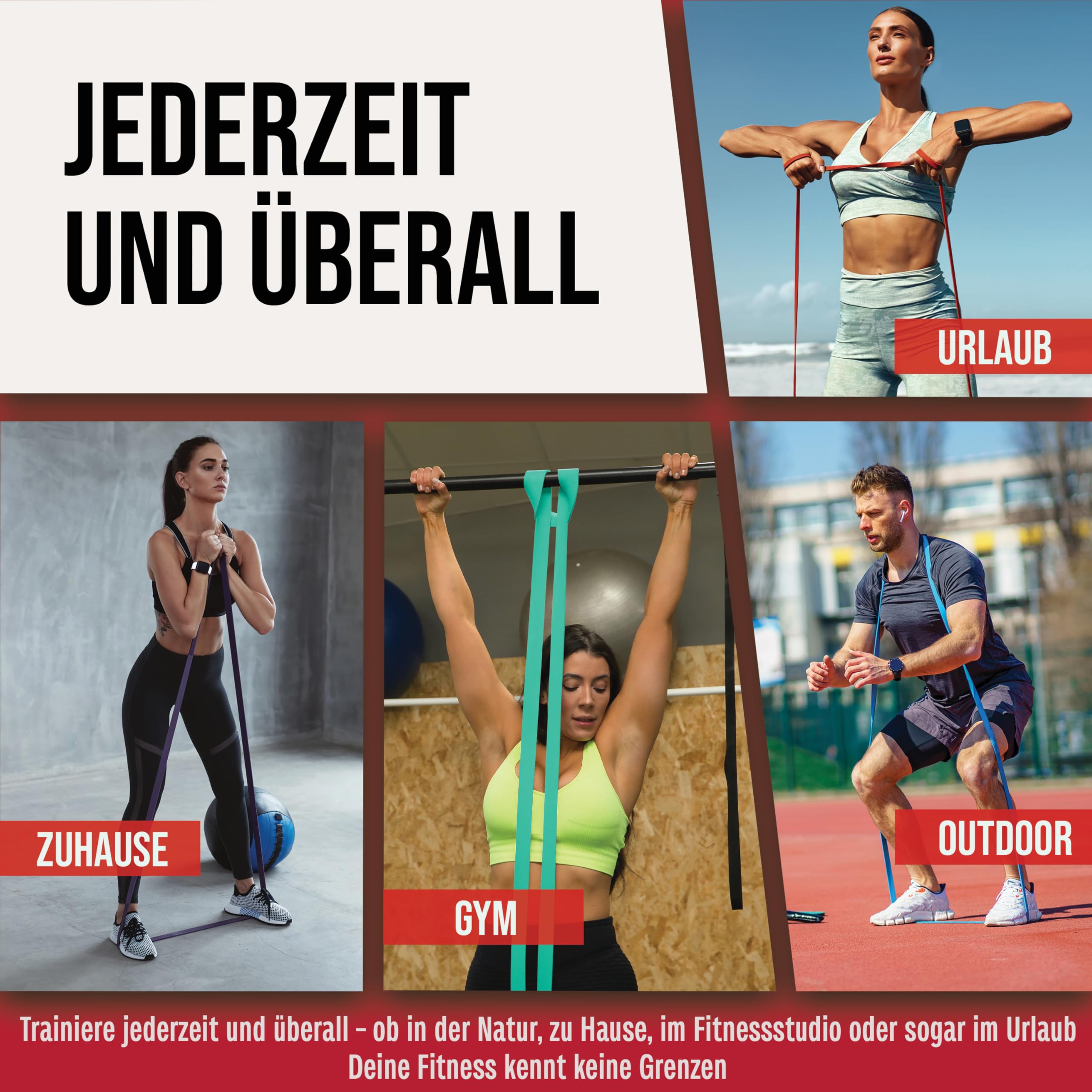- ✅ DAUDZPUSĪGS UN PIEMĒROTS FITNESAM: Neatkarīgi no tā, vai tas paredzēts ķermeņa augšdaļai, kājām, vēderam, mugurai, rokām vai mērķtiecīgai stiepšanai — ar mūsu daudzpusīgajām pretestības lentēm jūs varat perfekti pielāgot treniņu saviem mērķiem. Izmantojiet lentes atsevišķi vai apvienojiet vairākus stipruma līmeņus, lai palielinātu pretestību un padarītu treniņu vēl efektīvāku.