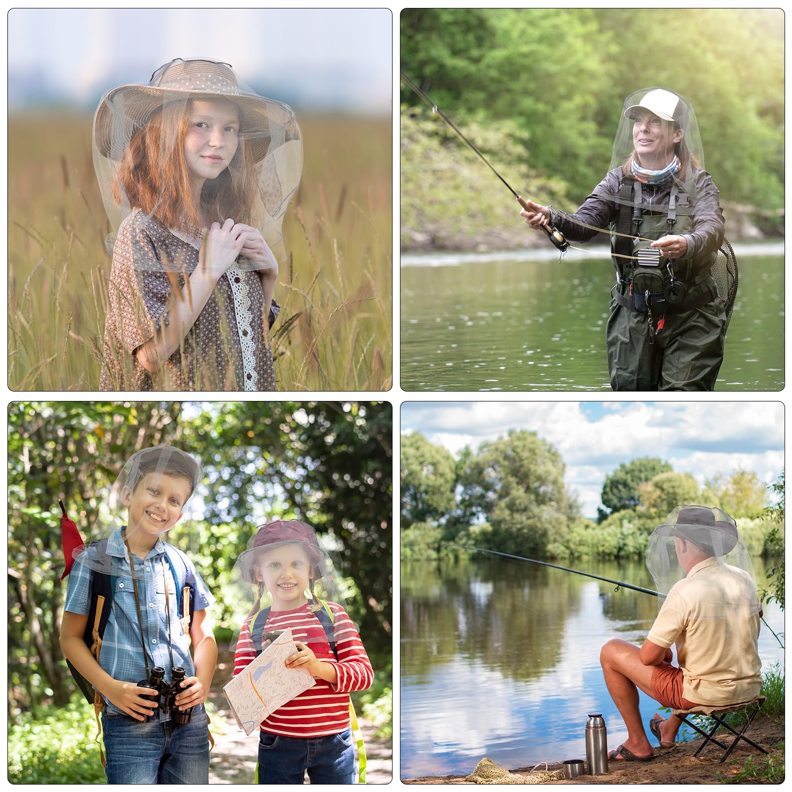 Sīkāka informācija: Galvas aizsargs no sieta ir piemērots āra aktivitāšu entuziastiem un aizsargā pret mušām, moskītu tīkliem un citām mušām.