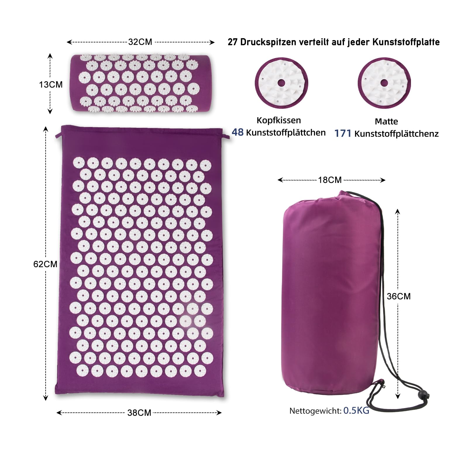 - 【Viegli pārnēsājams un lietojams】 Komplektā ietilpst pārnēsāšanas soma. Paklājiņu var sarullēt un ievietot pārnēsāšanas somā. Produkta svars ir tikai 0,5 kg, tas ir ļoti kompakts un viegls. Tā nav problēma, neatkarīgi no tā, vai vēlaties to ņemt līdzi uz biroju vai jogas studiju. Adatu paklājiņš ar universālo izmēru 62 x 38 cm (garums x platums) ir piemērots ķermeņa augumam līdz 185 cm.