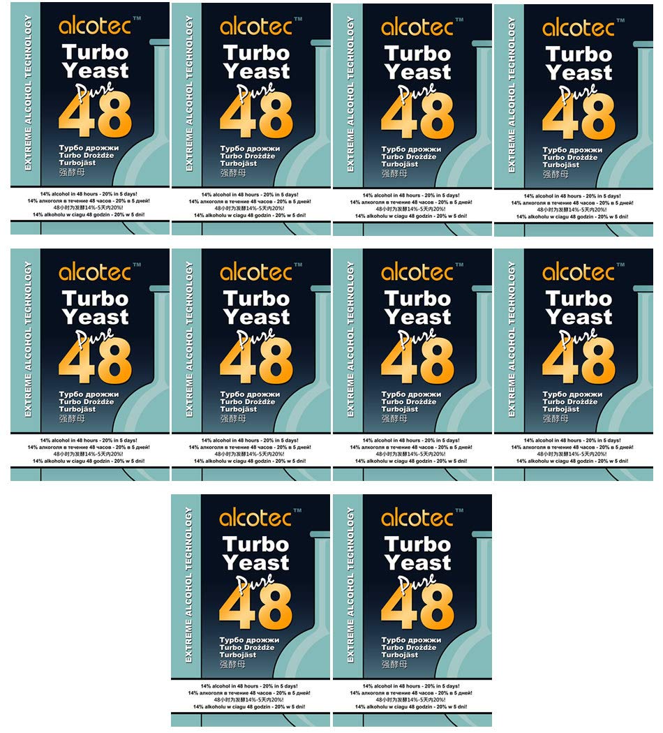 Alcotec 10x Turbo Raugs 48h Dual, līdz 21% alkohola (10 iepakojumi)