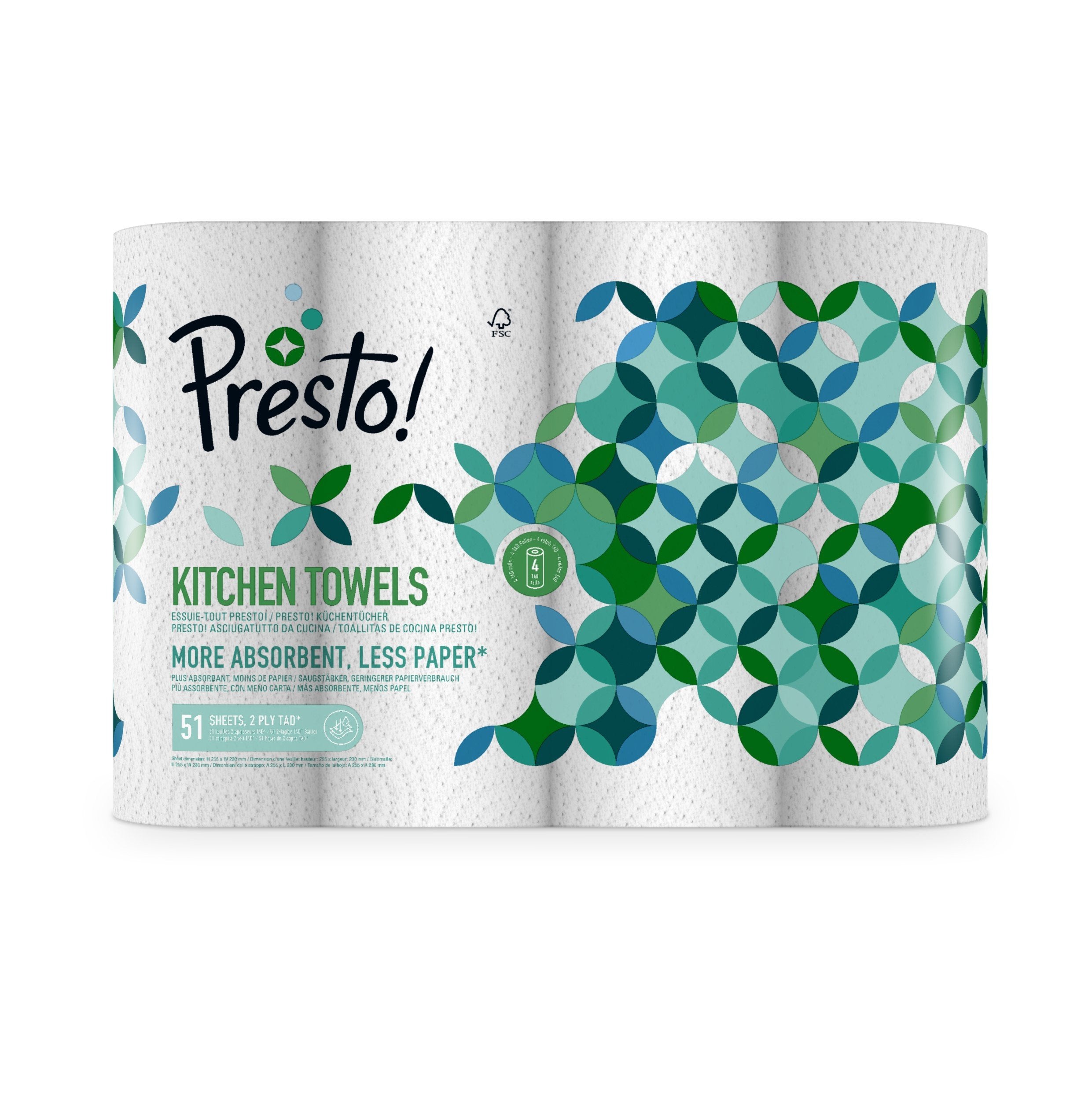 Amazon zīmols: Presto! TAD virtuves papīrs, īpaši uzsūcošs, 32 ruļļi (4 ruļļi, 8 iepakojums), 51 loksne rullī, izspiežams un atkārtoti lietojams, FSC sertificēts
