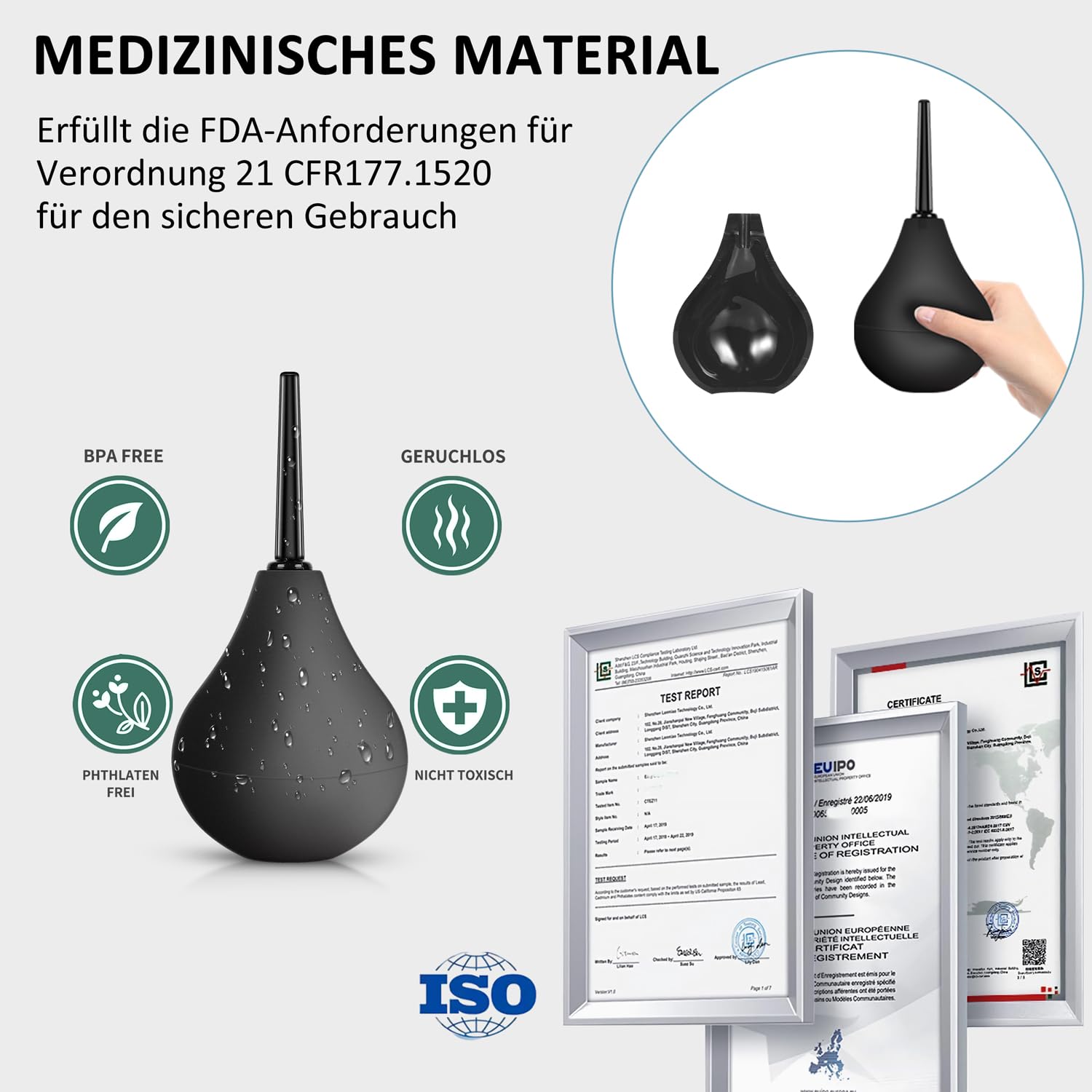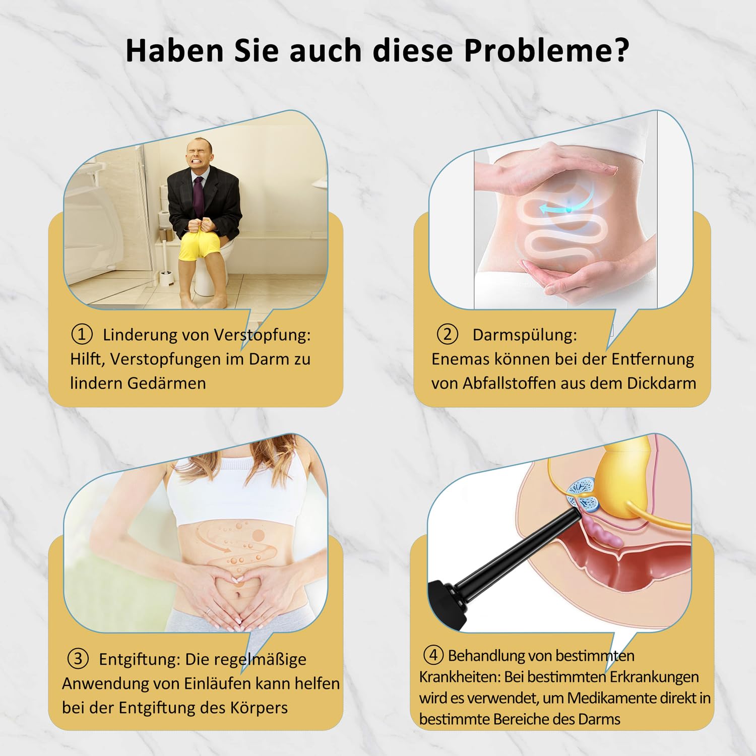 Anālā dušas klizma zarnu skalošanai - Irrigator zarnu skalošanai • Intīmā duša anālajai un vaginālajai skalošanai, ar 3 x noņemamām, ērtām sprauslām 224 ml