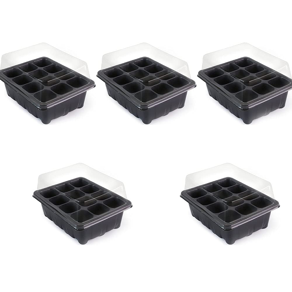 ANCLLO iekštelpu siltumnīcas pavairotājs, 5 iepakojumi, 60 šūnas, mini siltumnīcas pavairošanas komplekts, stādu sākuma paplātes, siltumnīcas pavairošanas paplāte ar kupoliem un pamatni sēklu sākšanai