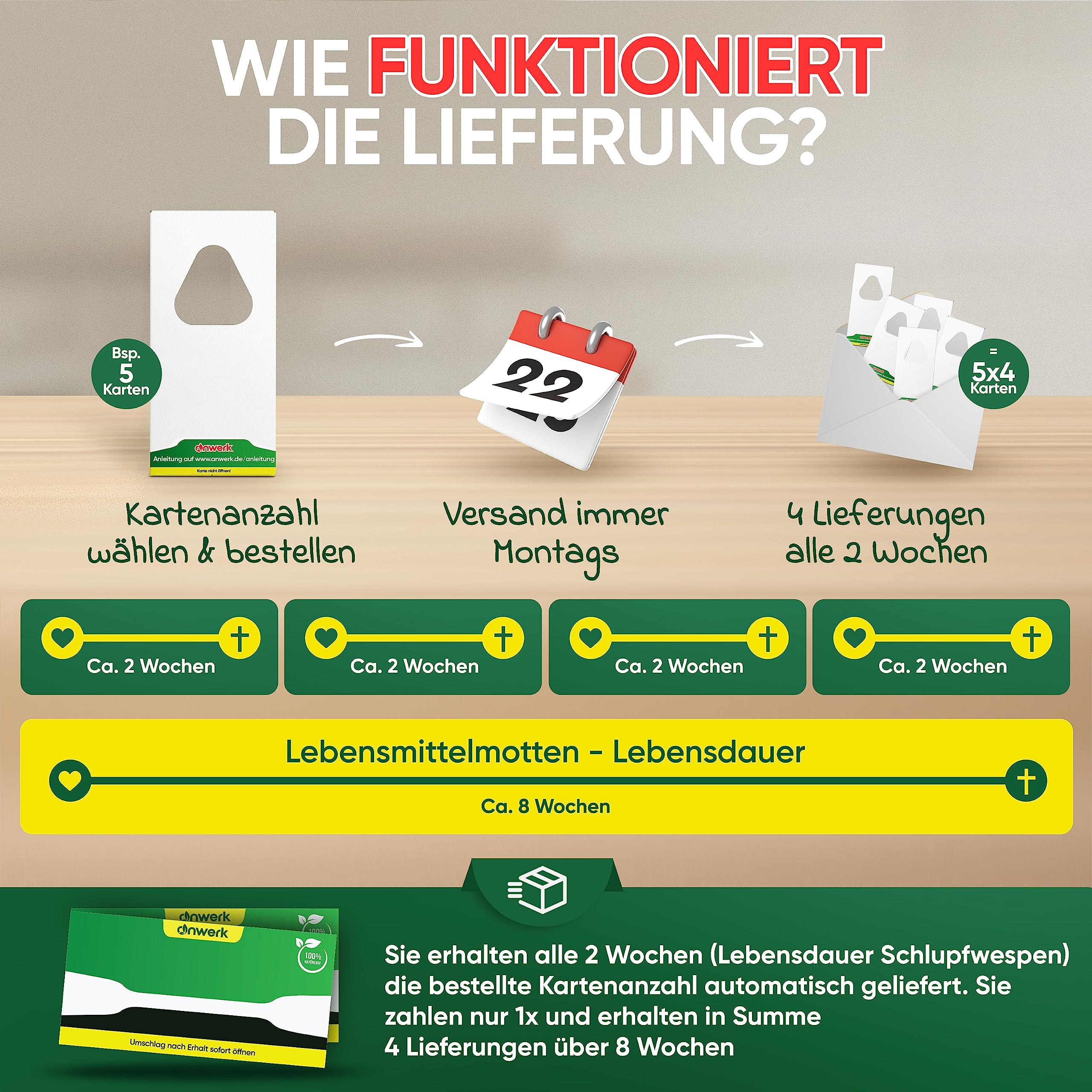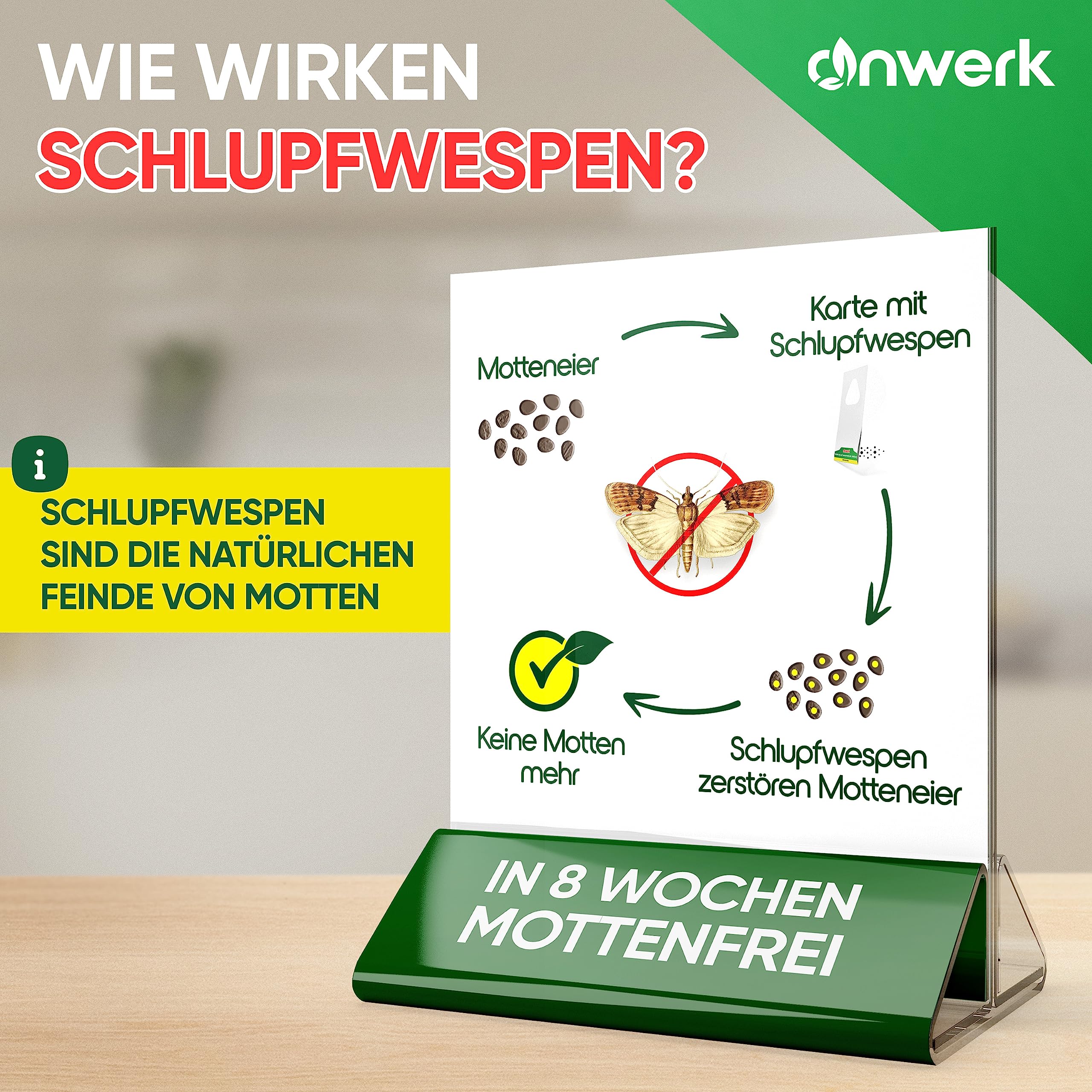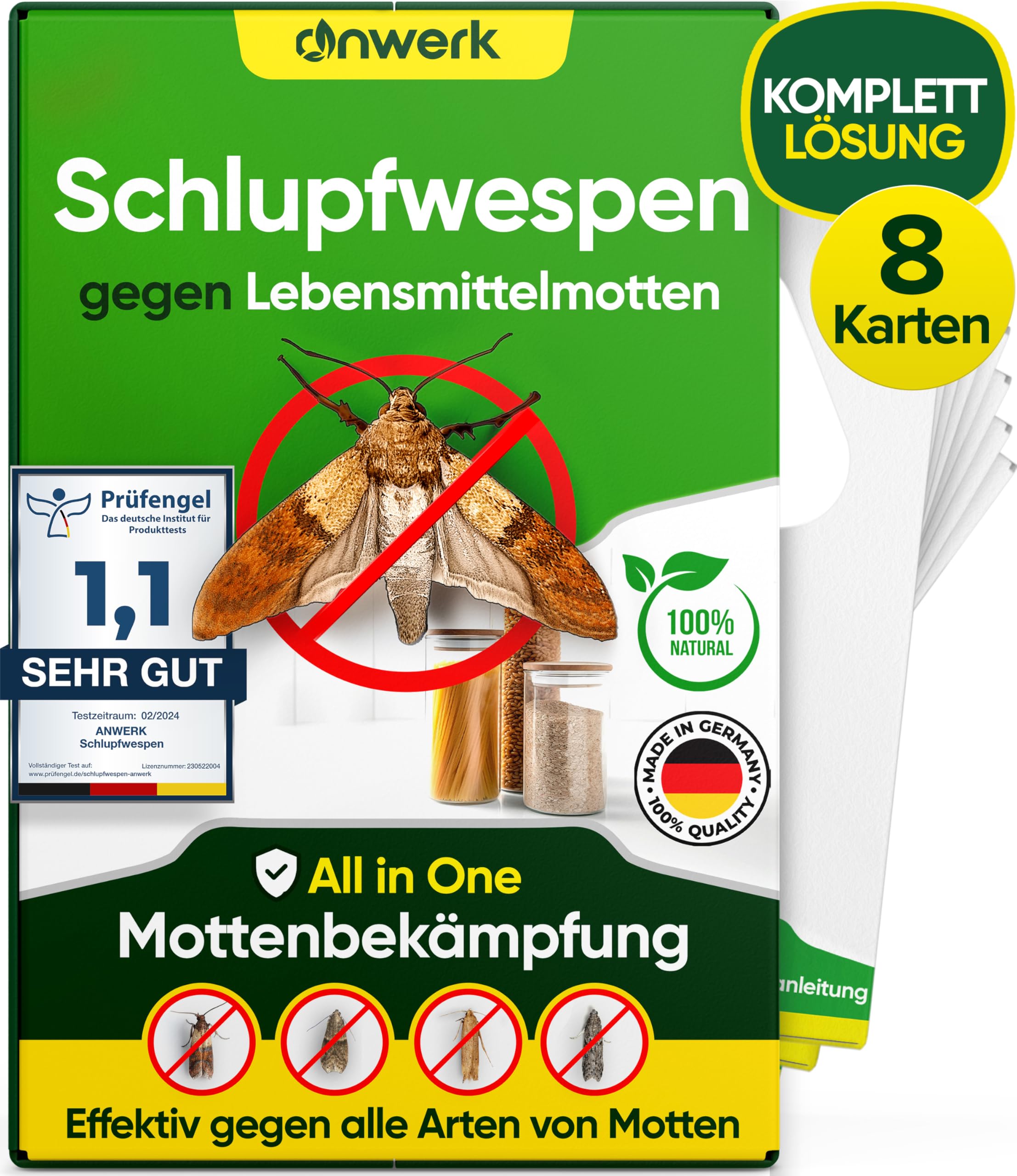 anwerk® Parazītiskās lapsenes pret pārtikas kodēm - 8 kartītes (2 kartītes ar 4 piegādēm) - Efektīvi apkaro pārtikas kodes - Alternatīva kožu slazdiem, kožu aerosoliem un feromonu slazdiem