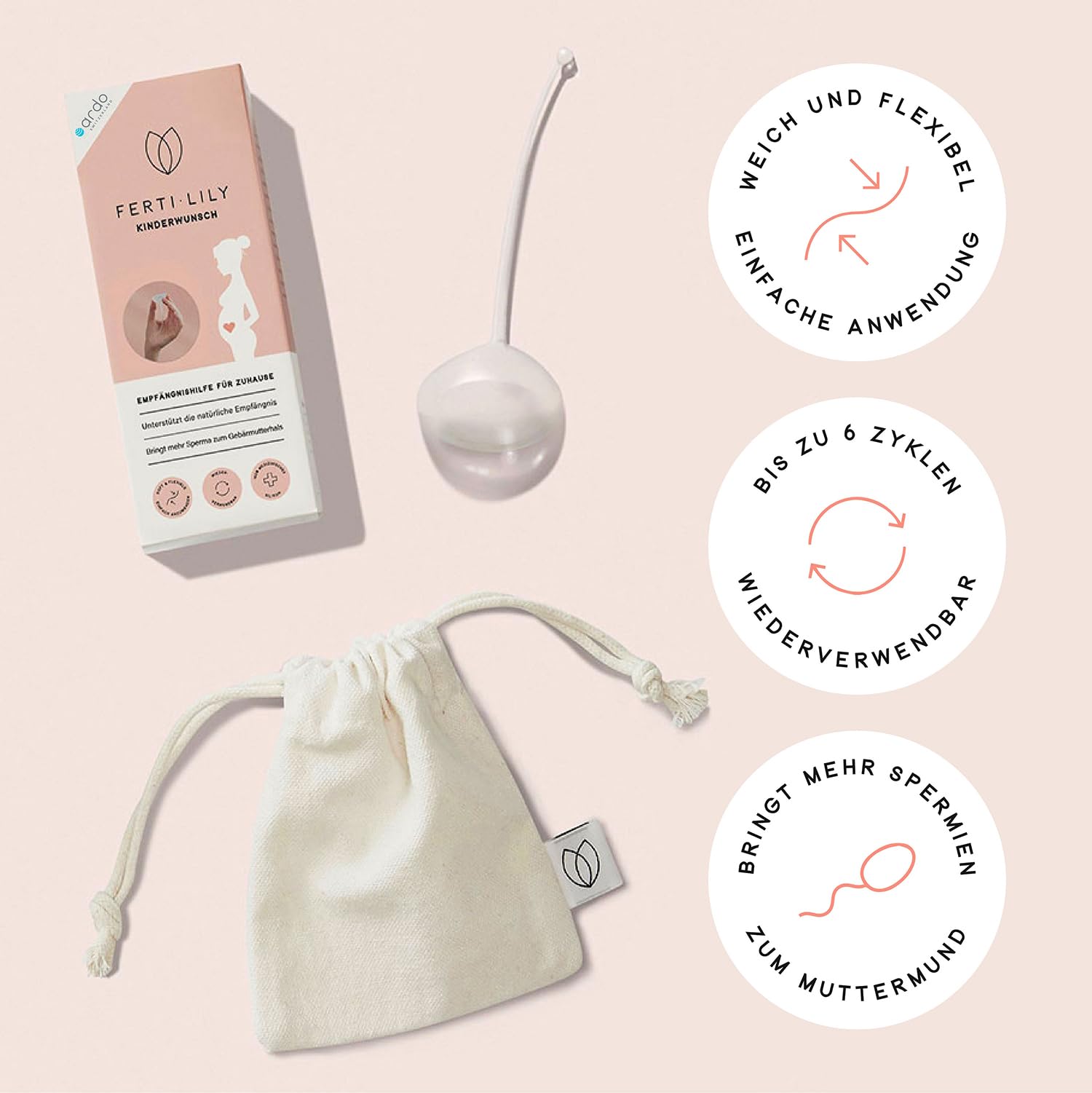 Ardo FERTI-LILY auglības līdzeklis ieņemšanai, grūtniecības līdzeklis, dabiski maigs, bez hormoniem, lietošanai mājās, 100% medicīniskais silikons, bērna plānošana un grūtniecības iestāšanās