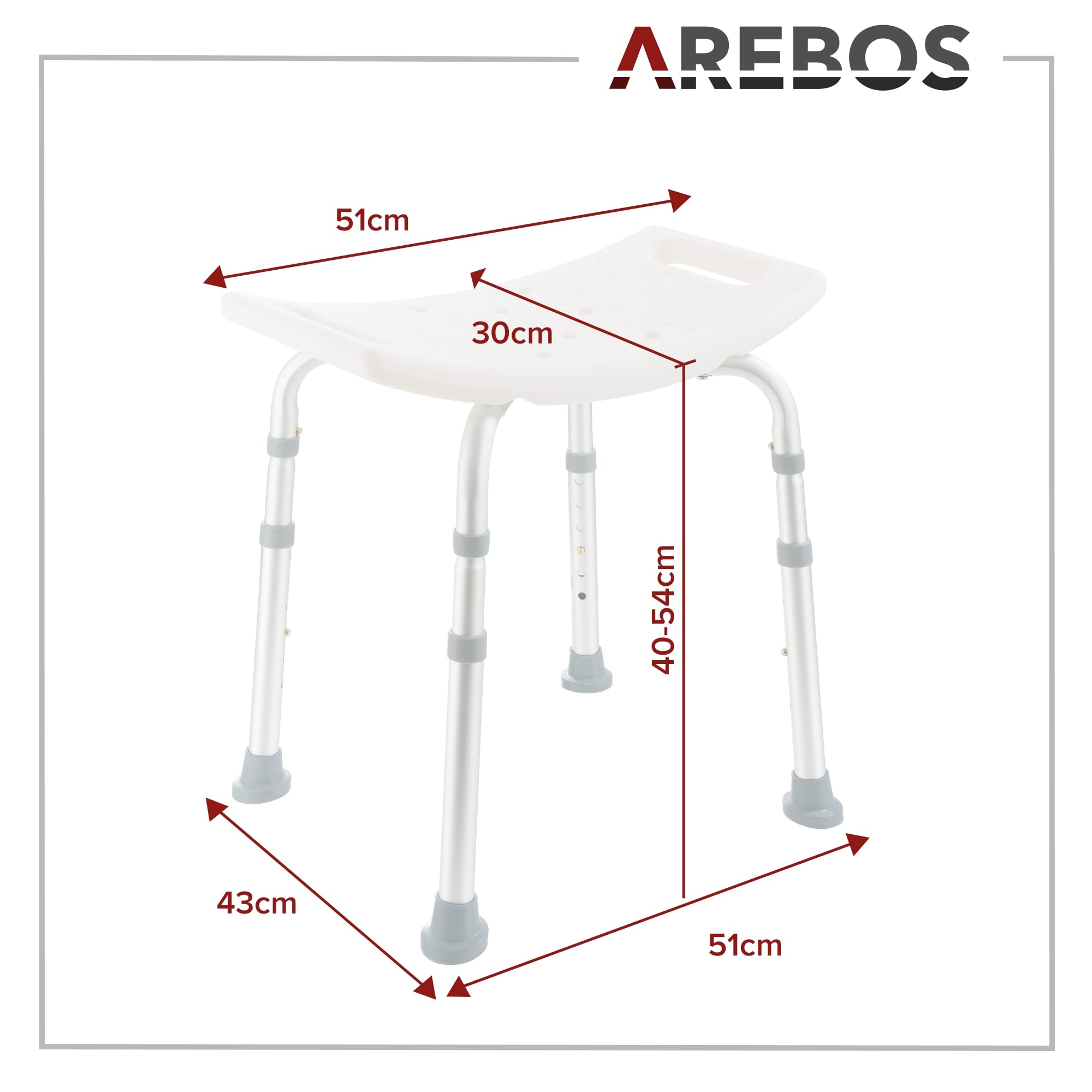 Arebos dušas krēsls | Regulējams augstums | alumīnija rāmis | Neslīdošas gumijas kājiņas | Sēdeklis ar drošības rokturiem | Dušas palīglīdzeklis | Dušas krēsls | Dušas sēdeklis | vannas istabas krēsls | Vannas sēdeklis | senioriem