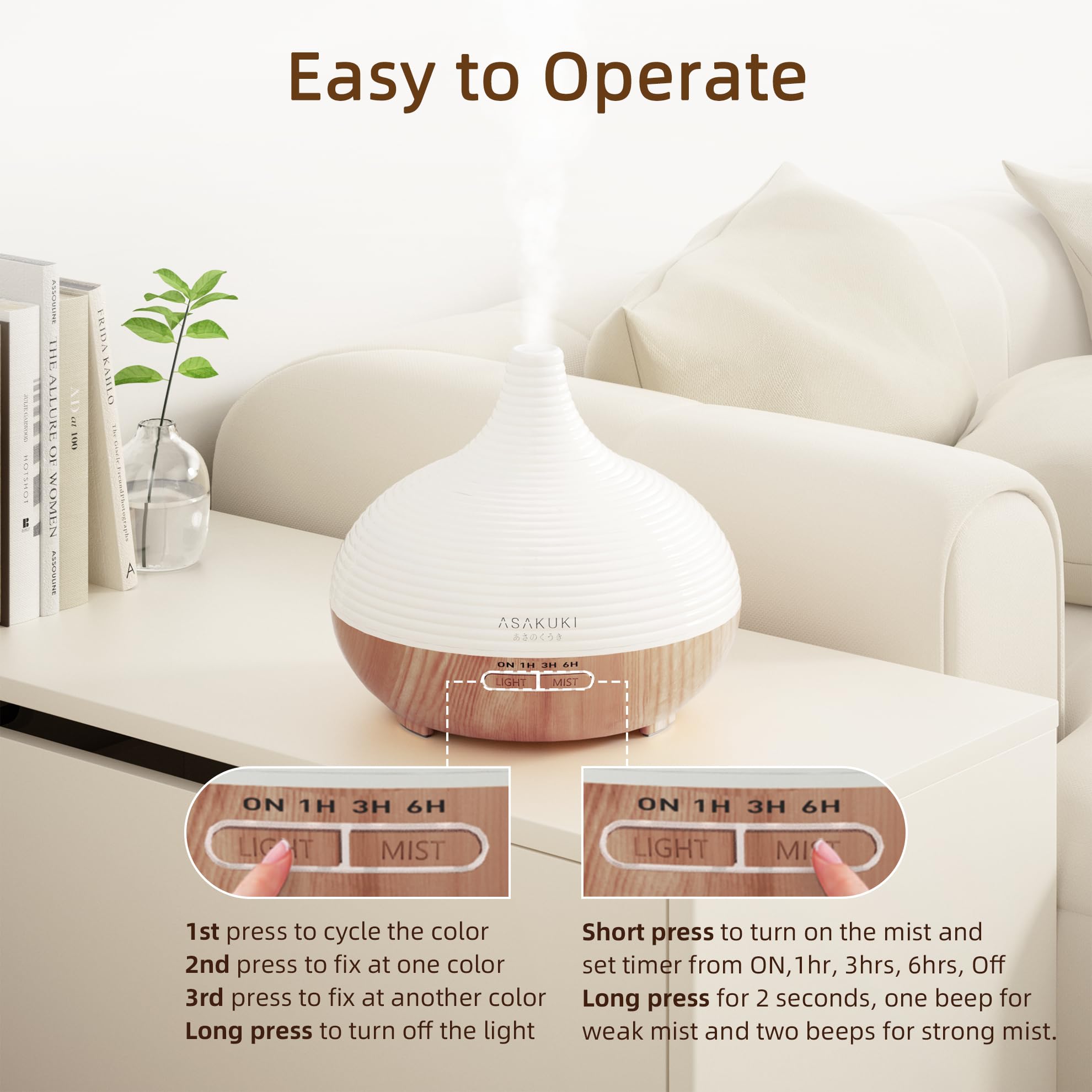 - 💝100% BEZ RISKA PIRKUMS: ASAKUKI mēs ļoti uzticamies saviem ēterisko eļļu difuzoriem. Galu galā, mēs paši tos lietojam! Ja rodas problēmas ar difuzoru, lūdzu, nevilcinieties sazināties ar mums — jūsu apmierinātība ir mūsu galvenā prioritāte!