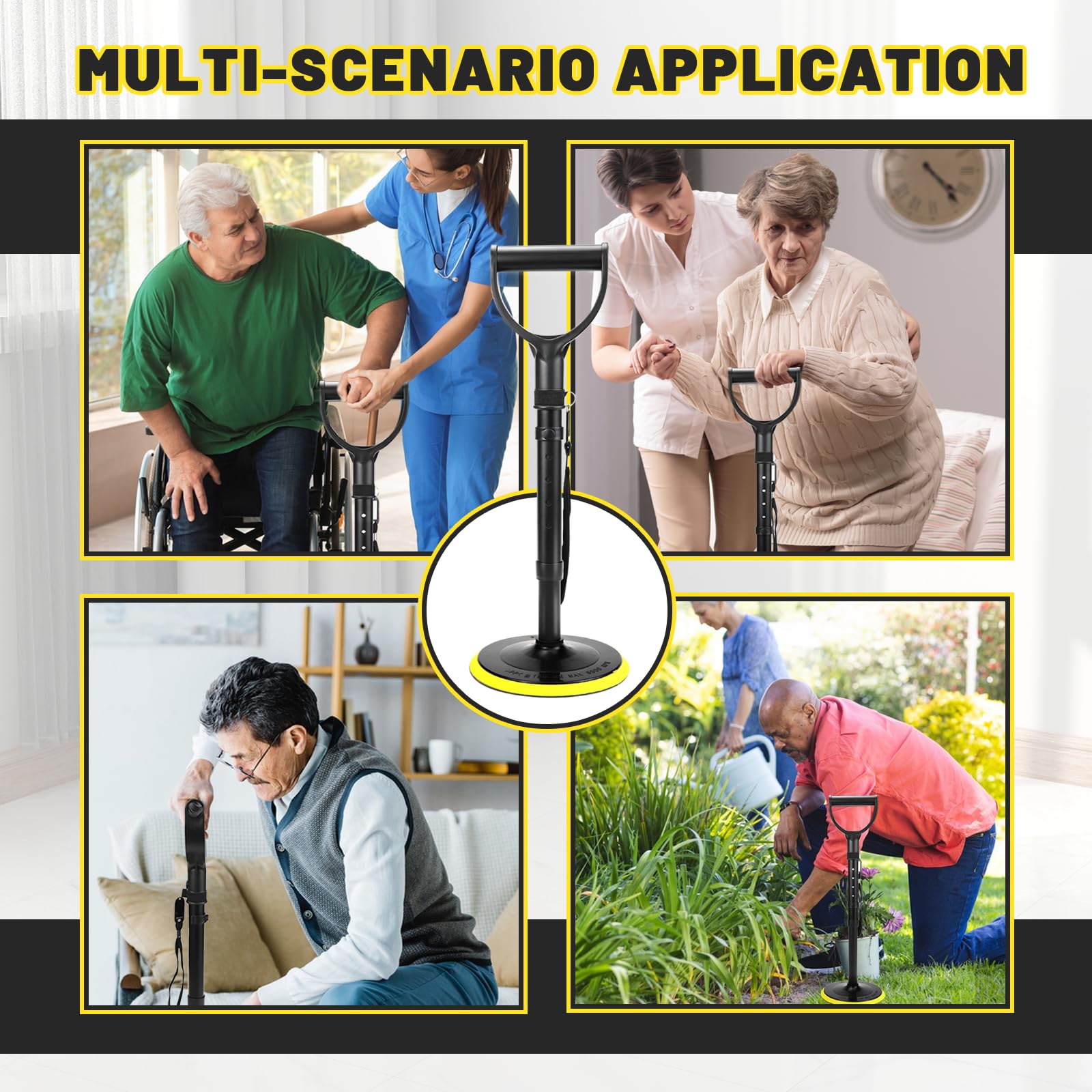 - 👨🦯STABILIZĒJOŠS DIZAINS: Senioriem paredzētā stāvēšanas palīglīdzekļa rokturis ir tik plats, ka plauksta var viegli to aptvert, samazinot paslīdēšanas vai kritiena risku. Lielais silikona disks ar 18 cm diametru un izturīgie dubultie bloķēšanas stieņi nodrošina stāvēšanas palīglīdzekli vecāka gadagājuma cilvēkiem ar ievērojamu neslīdošu un atbalstošu efektu, lai to varētu bez problēmām izmantot gan telpās, gan ārpus tām.