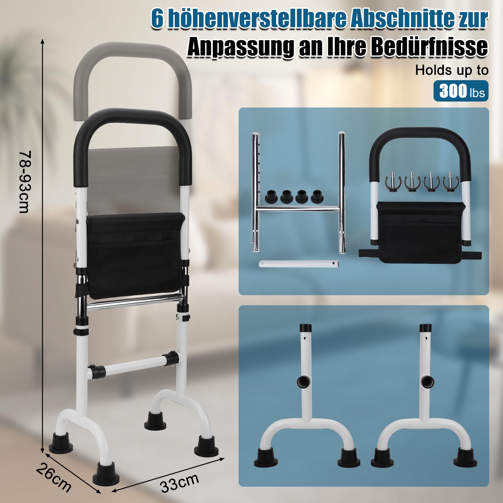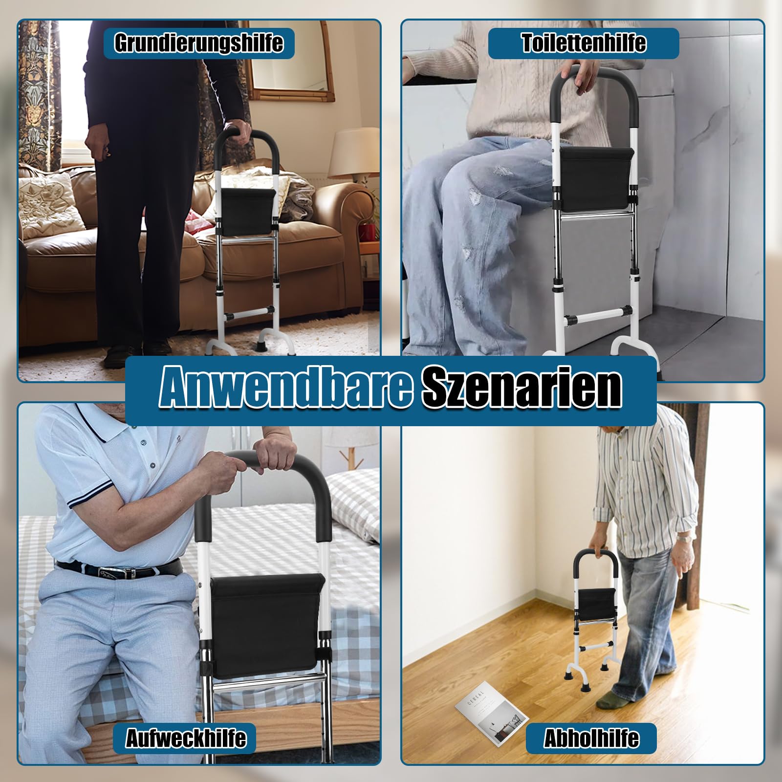 - Praktiski piederumi un vienkārša montāža: Komplektā ietilpst uzglabāšanas soma mazām detaļām + montāža bez instrumentiem 15 minūtēs. Nav nepieciešama urbšana — gatavs lietošanai kā stāvošs palīglīdzeklis vannas istabā vai viesistabā