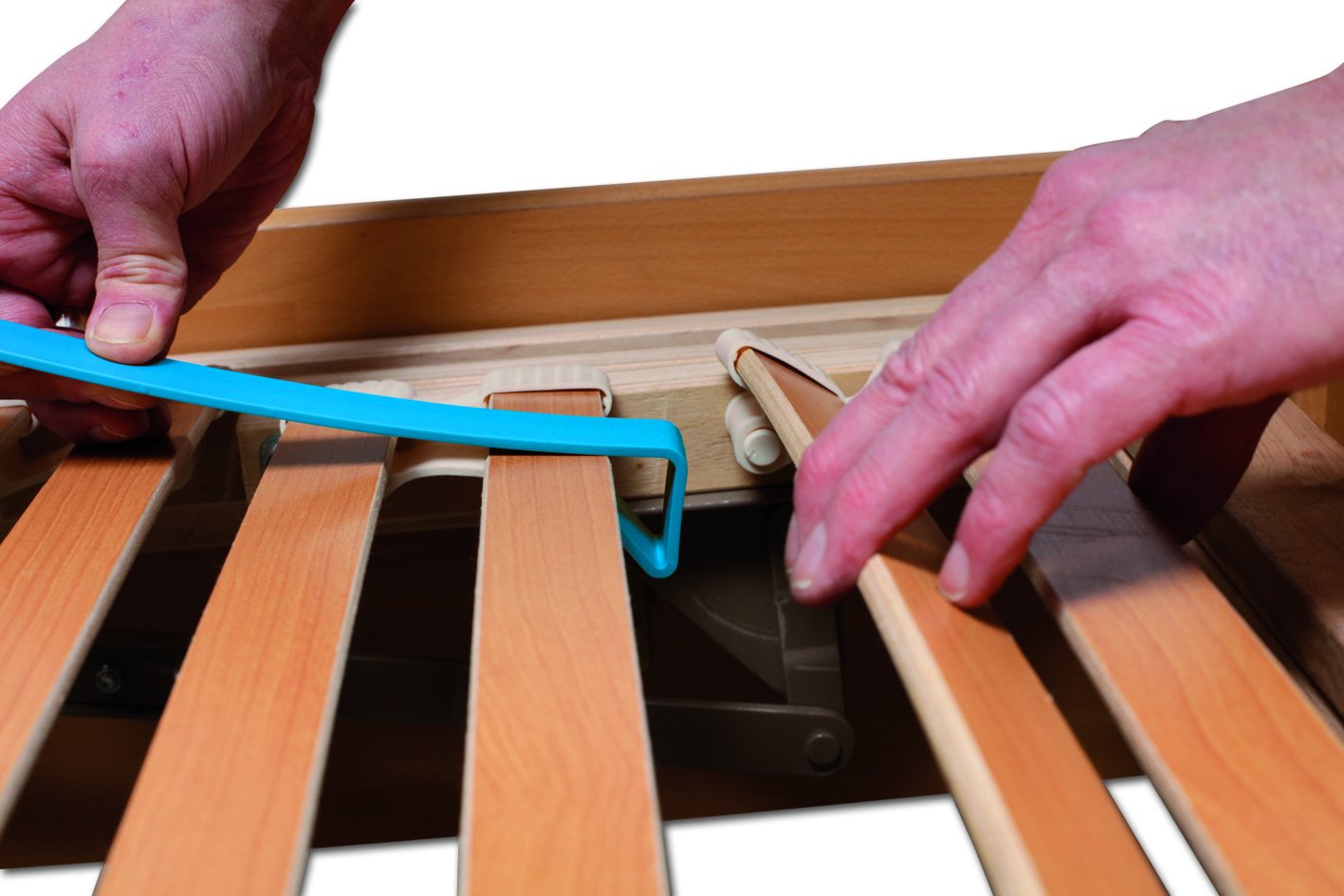 Stāvēšanas palīglīdzeklis vienkārši ievietojams rāmī pareizajā vietā zem matrača — un viss!