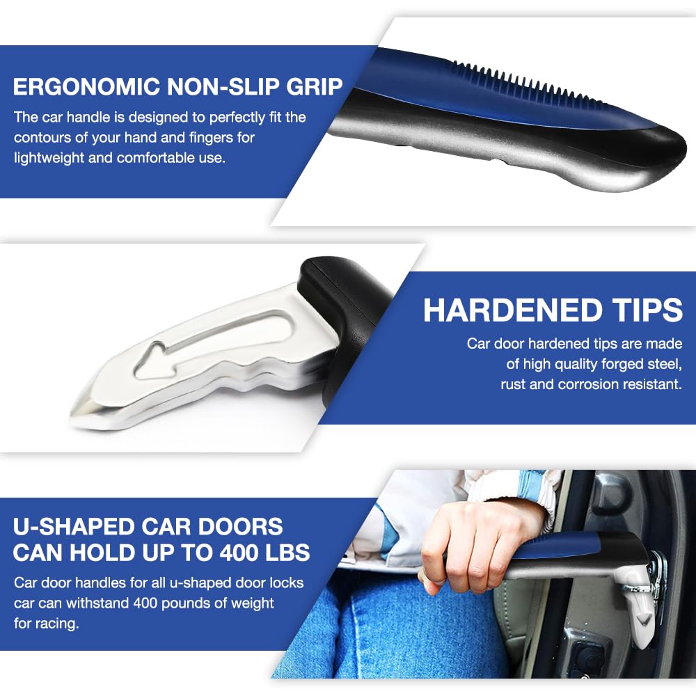 - [Augstas kvalitātes materiāls] Mūsu automašīnas izkāpšanas palīglīdzekļi ir izgatavoti no augstas kvalitātes kalta tērauda ar modernu un izturīgu kompozītmateriālu, rokturis ir izgatavots no gumijas ar neslīdošu virsmu, atbilst plaukstas un pirkstu kontūrai un ir dabiski un ērti turams.