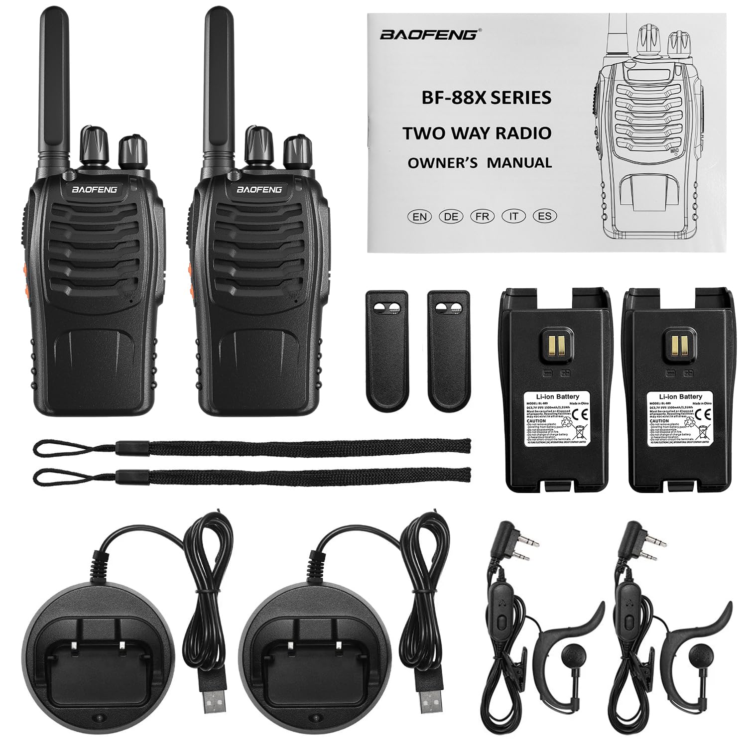 - 【Skaļš un skaidrs skaļrunis un mikrofons】Tāla darbības rādiusa rācijai ir automātiska trokšņu samazināšanas funkcija, rācija pārraidīs un uztvers tikai jūsu balsi. Varat sūtīt savu balsi caur rācijas mikrofonu vai runāt, izmantojot austiņu mikrofonu.