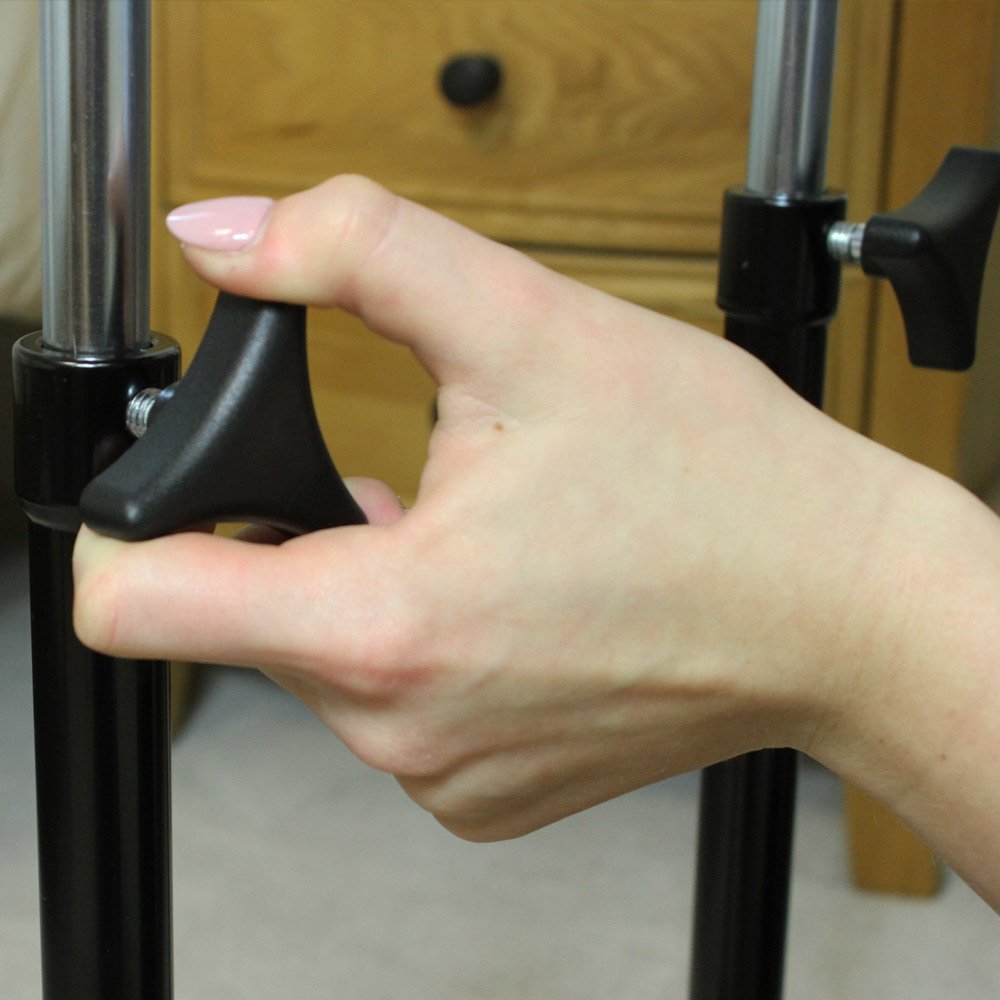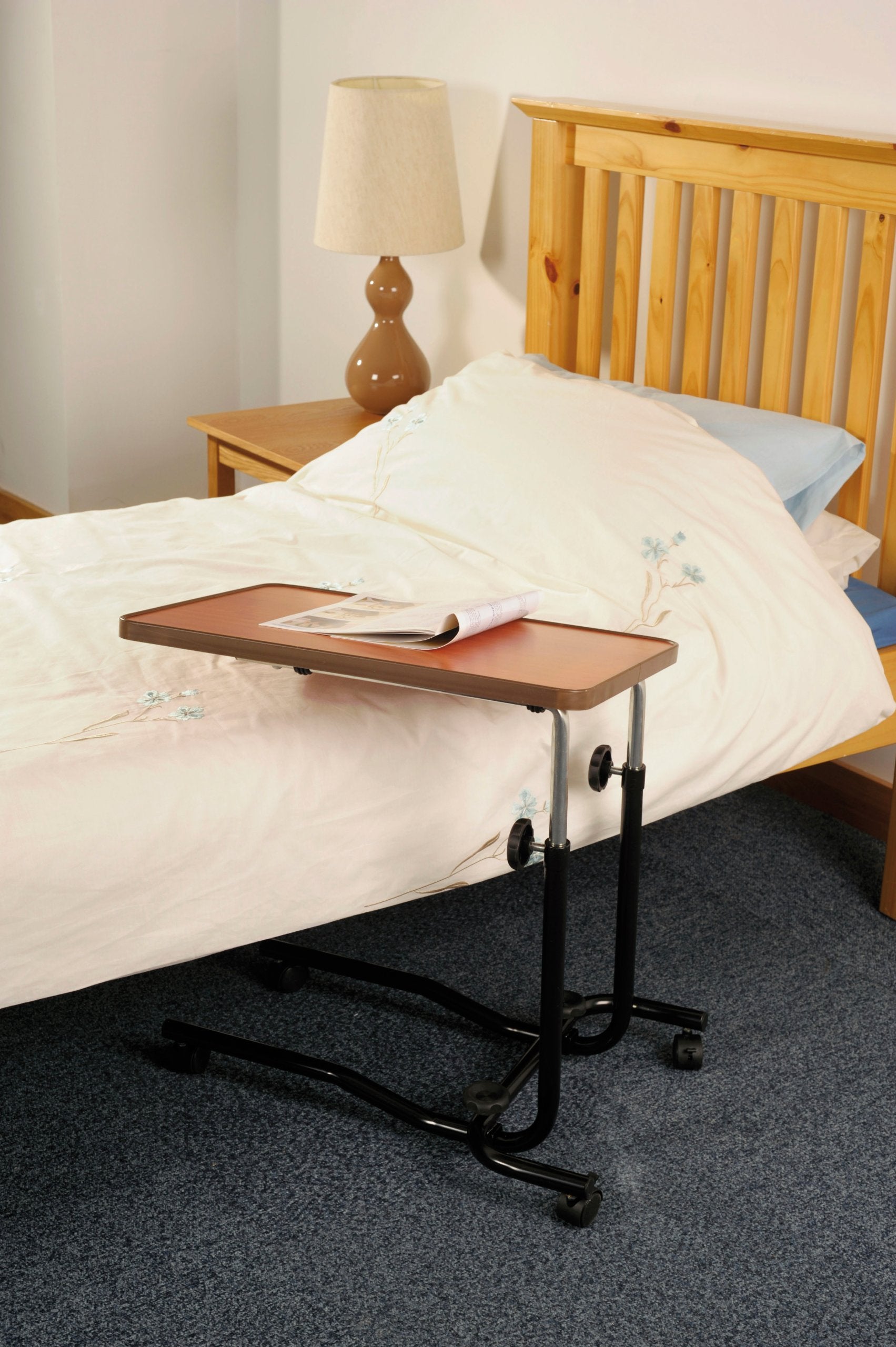 - Augstumā regulējams galds lietošanai sēžot gultā vai atzveltnes krēslā
