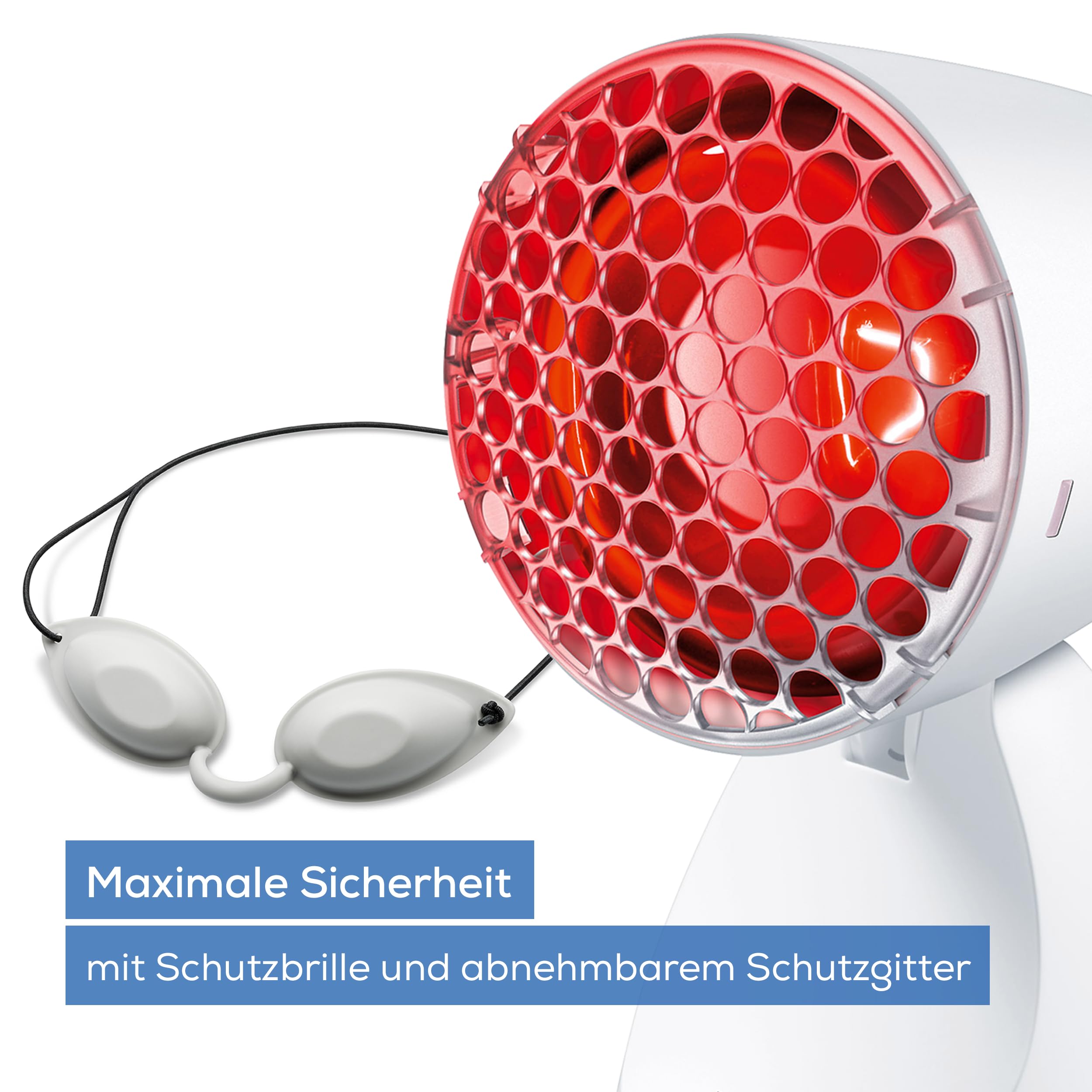 Beurer IL 11 infrasarkanā lampa ar aizsargrežģi, medicīniska ierīce ar nomierinošu siltumu lietošanai saaukstēšanās un muskuļu sasprindzinājuma gadījumos, 5 slīpuma līmeņi, ieskaitot aizsargbrilles, balta