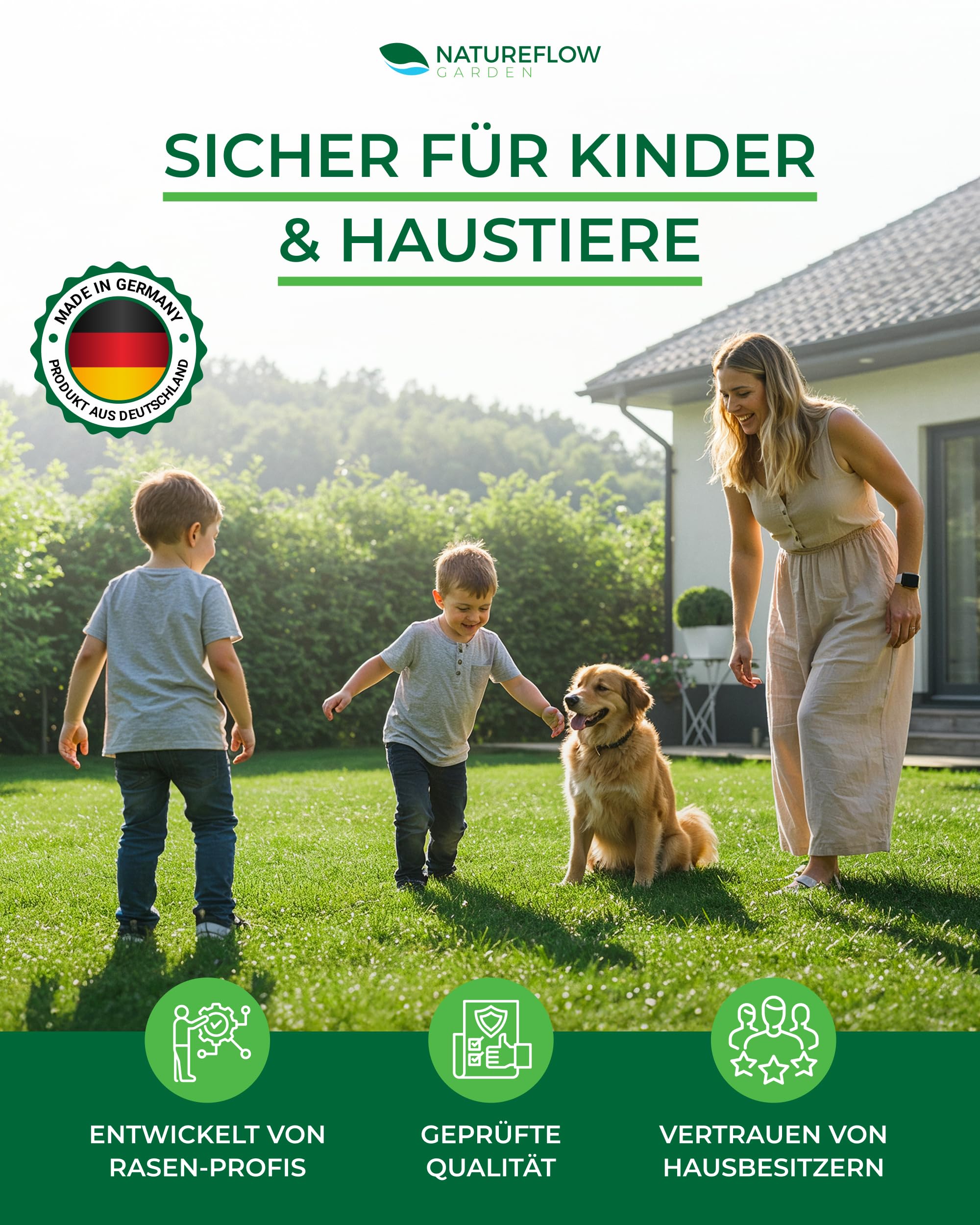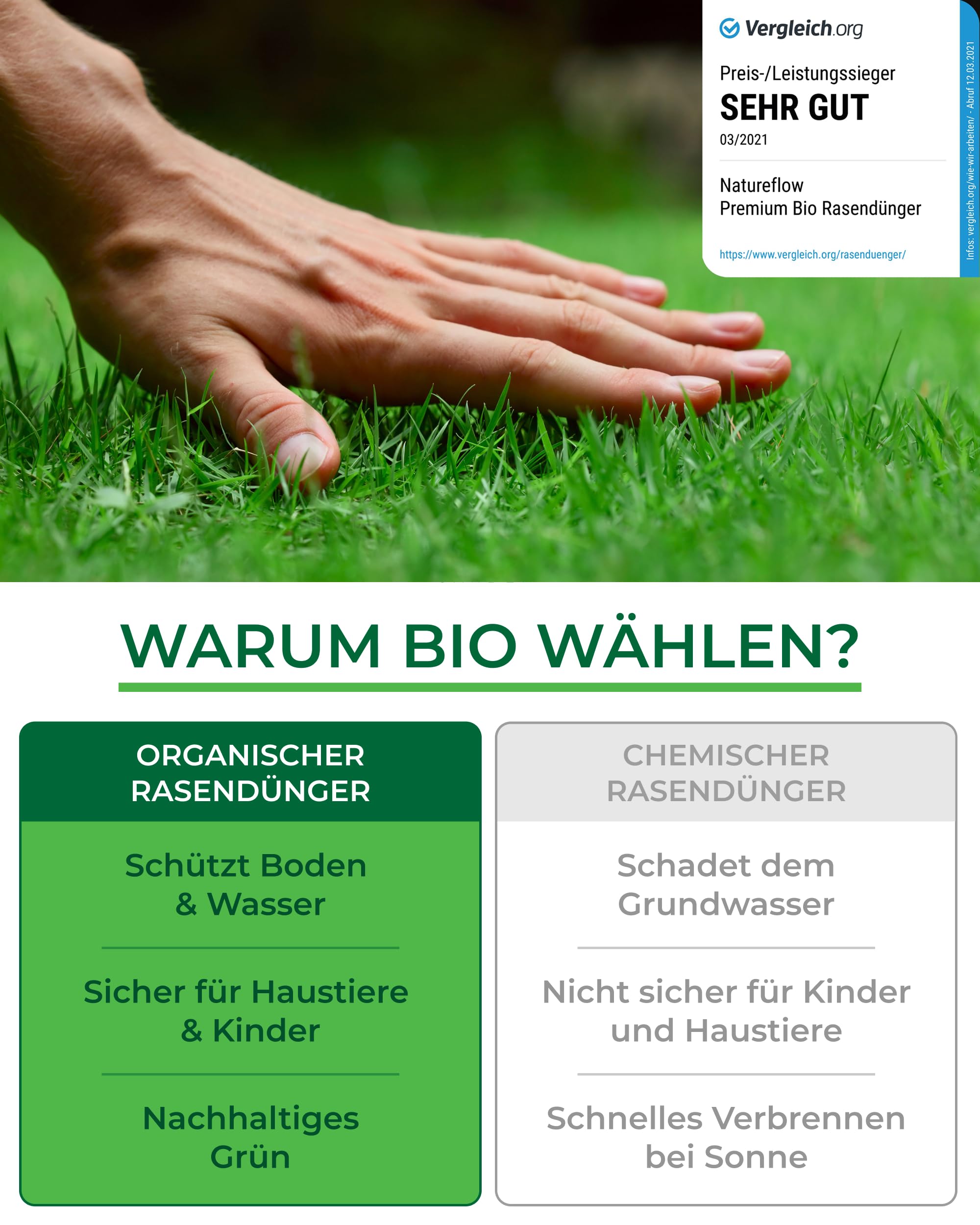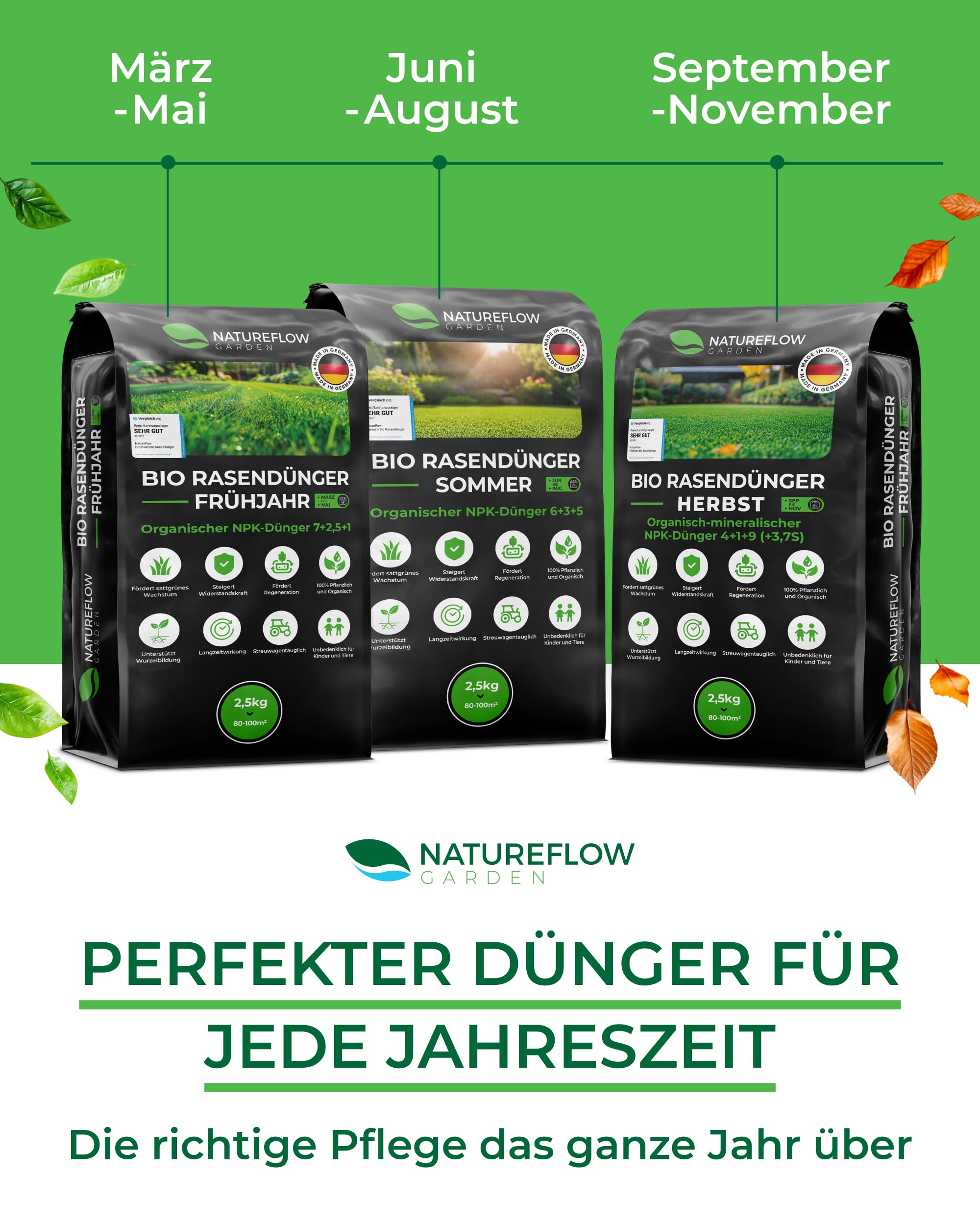 Organiskais zāliena mēslojums pavasara TESTA UZVARĒTĀJS Ražots Vācijā – 2,5 kg uz 100 kv.m – Organiskais zāliena mēslojums veselīgai augsnei un sulīgi zaļam zālienam – Zāliena mēslojums, pavasara zāliena mēslojums no Natureflow Garden