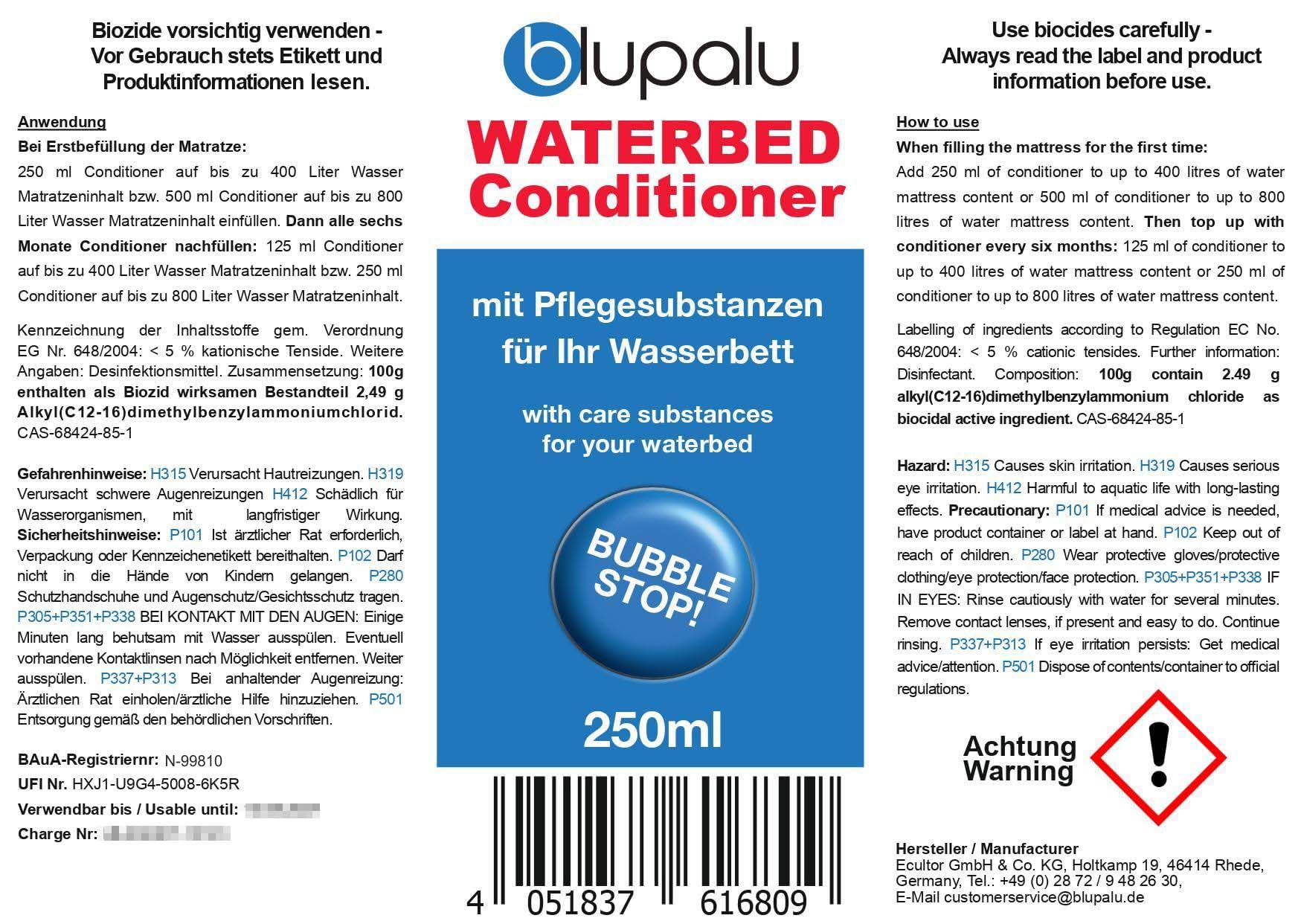 Modeļa numurs: blupalu ūdensgultas mīkstinātājs 4x 250ml