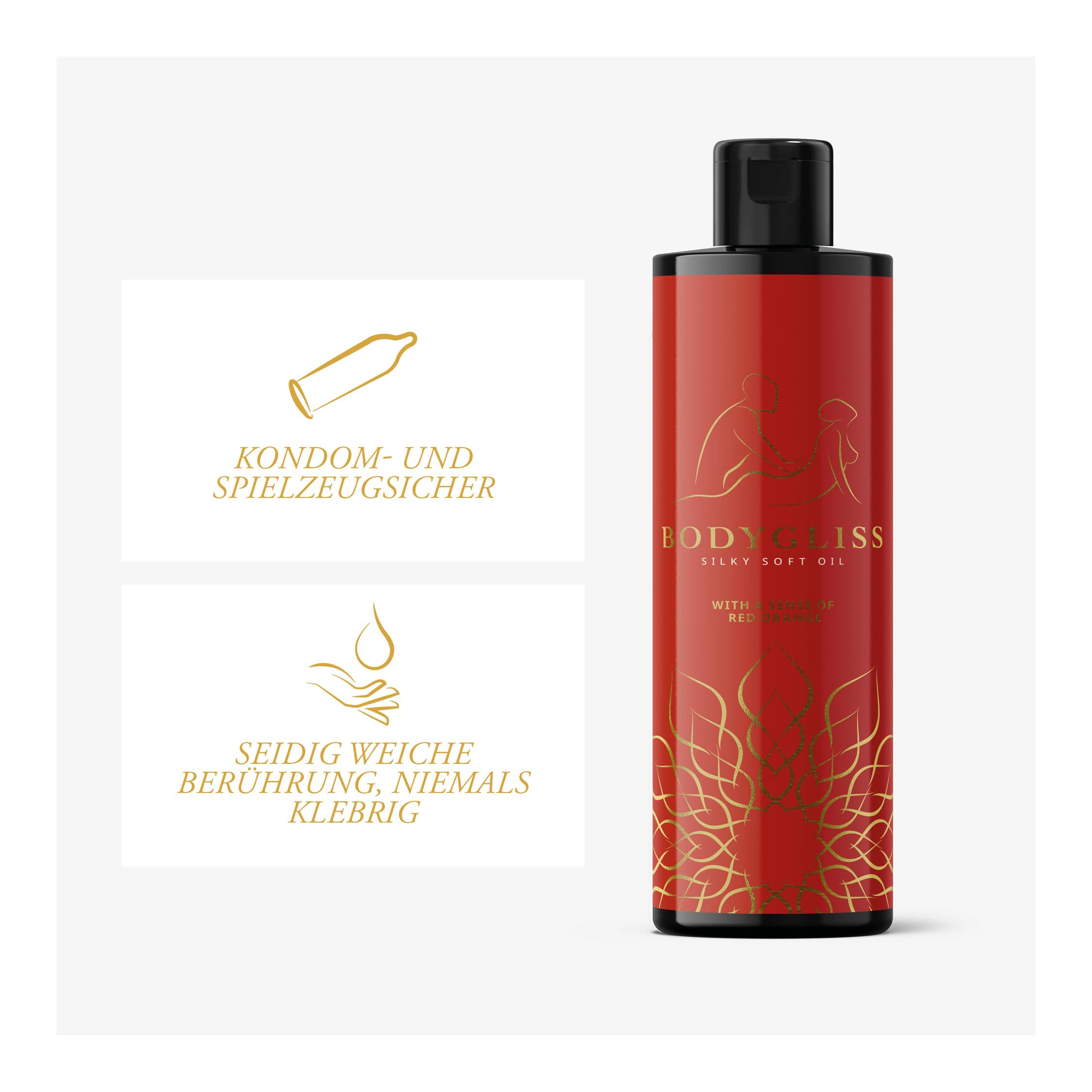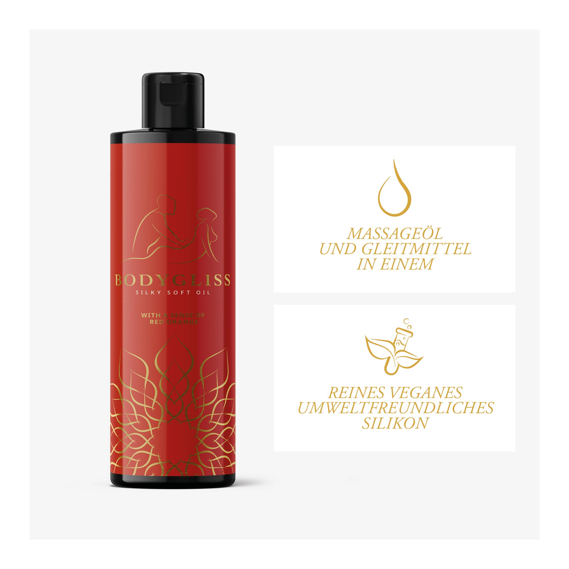 BodyGliss - 2-in-1 masāžas eļļa un uz silikona bāzes veidots lubrikants - 150 ml (Asinsapelsīns)