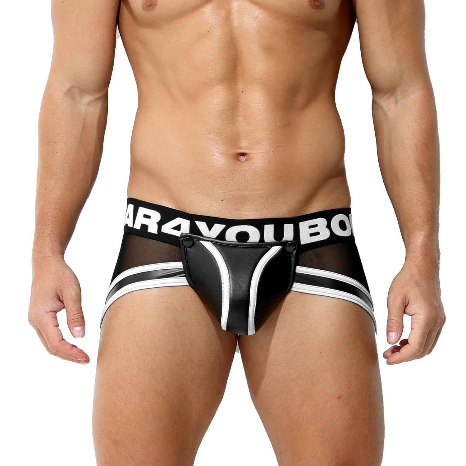 Bodywear4you vīriešu ādas fetiša biksītes ar lateksa imitācijas sieta apdari un rāvējslēdzēju, vīriešu vīrišķīgas bikses (DE/NL/SE/PL, burtciparu, S, parastais, parastais, baltas)