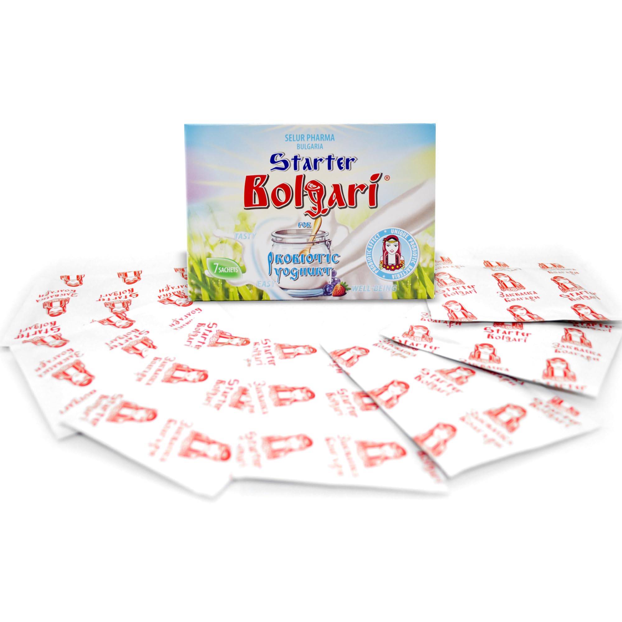 - Jogurta fermentācijas pulveris “Bolgari” satur dzīvas, labvēlīgas pienskābes baktērijas no Lactobacillus bulgaricus, Streptococcus thermophillus, Lactobacillus gasseri, Lactobacillus rhamnosus sugām, kas veicina labvēlīgās mikrofloras un zarnu floras atjaunošanos kuņģa-zarnu traktā (zarnu attīrīšana), kā arī normālu uzturu un gremošanas funkciju. Jogurta kultūras tiek izolētas no ekoloģiski tīriem Bulgārijas reģioniem, bez ģenētiskas modifikācijas.