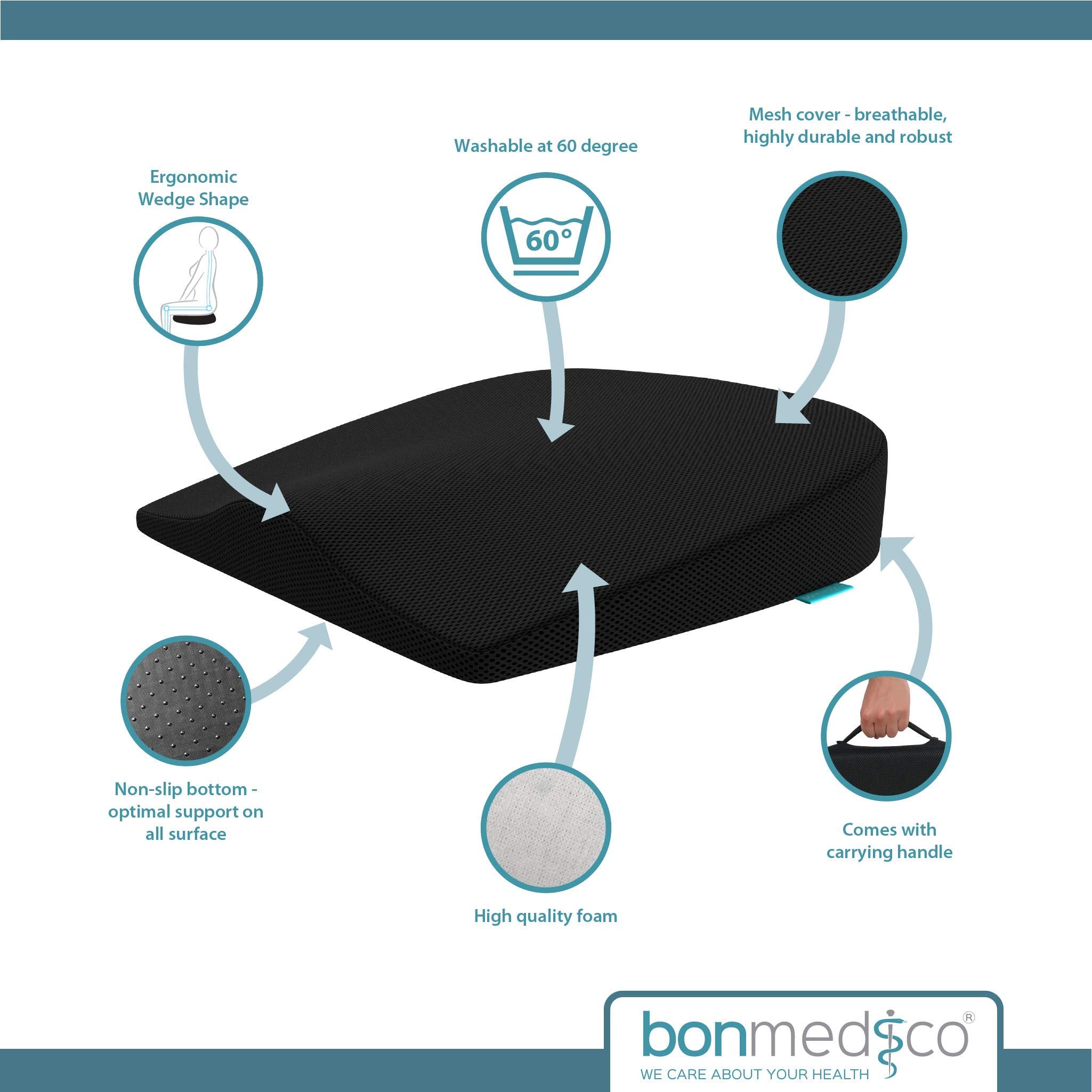 bonmedico ortopēdiskais ķīļveida spilvens krēslam un automašīnai, ergonomisks ķīļveida spilvens - ērts sēdekļa pārvalks automašīnai un ceļojumiem - labsajūtai (melns)