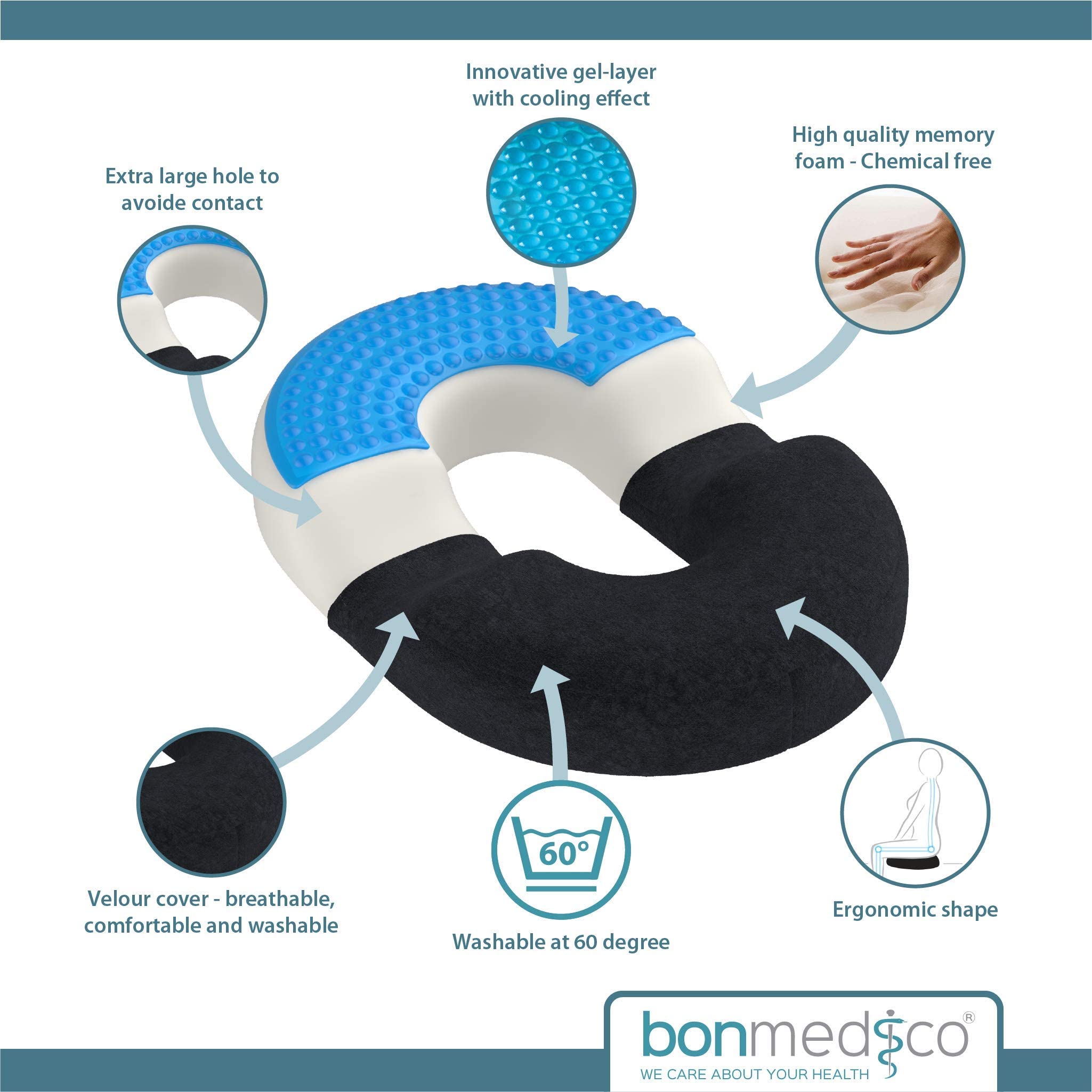 Bonmedico ortopēdiskais sēdekļa spilvens - biroja krēslam, automašīnai, ratiņkrēsla sēdekļa gredzens - dzesēšanas gēla slānis - ērts hemoroīdu un astes kaula spilvens - slepena Ziemassvētku vecīša dāvana - labsajūtai melns, liels