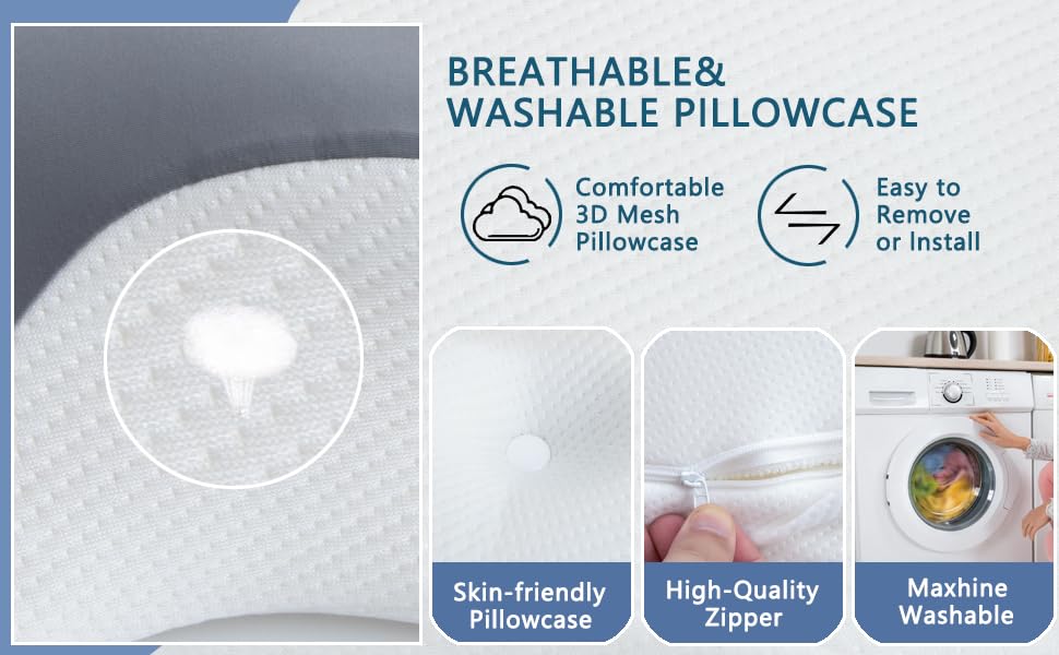 Dzemdes kakla spilvens kakla sāpju mazināšanai, Elegear Contour Memory Foam spilvens ergonomisks kakla atbalsts sānu muguras gulētājiem uz vēdera