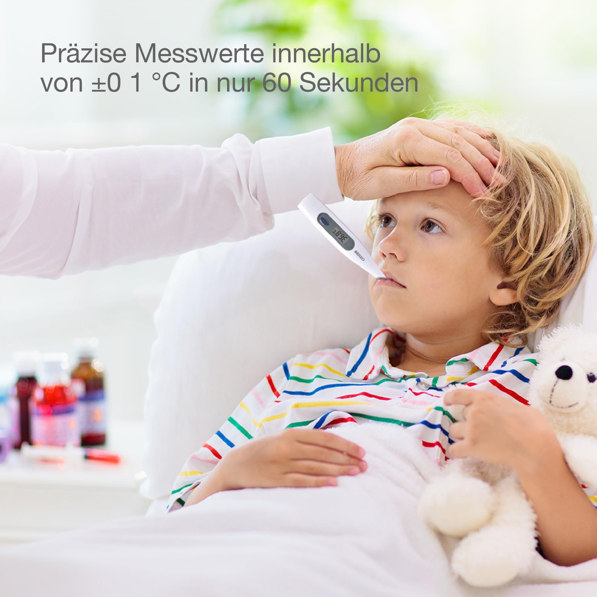 - 【Antibakteriāls — maksimāla drošība jums un visai jūsu ģimenei】 Mūsu termometra galvenā daļa atbilst starptautiskajam standartam ISO22196 un satur īpašus antibakteriālus līdzekļus, kas nodrošina maksimālu drošību un aizsardzību. Tāpēc tas ir ideāli piemērots lietošanai mutē, padusēs un rektāli, jo tas uztur higiēnu, samazina savstarpējas inficēšanās risku un aizsargā jūs un jūsu tuviniekus no vīrusiem un baktērijām.