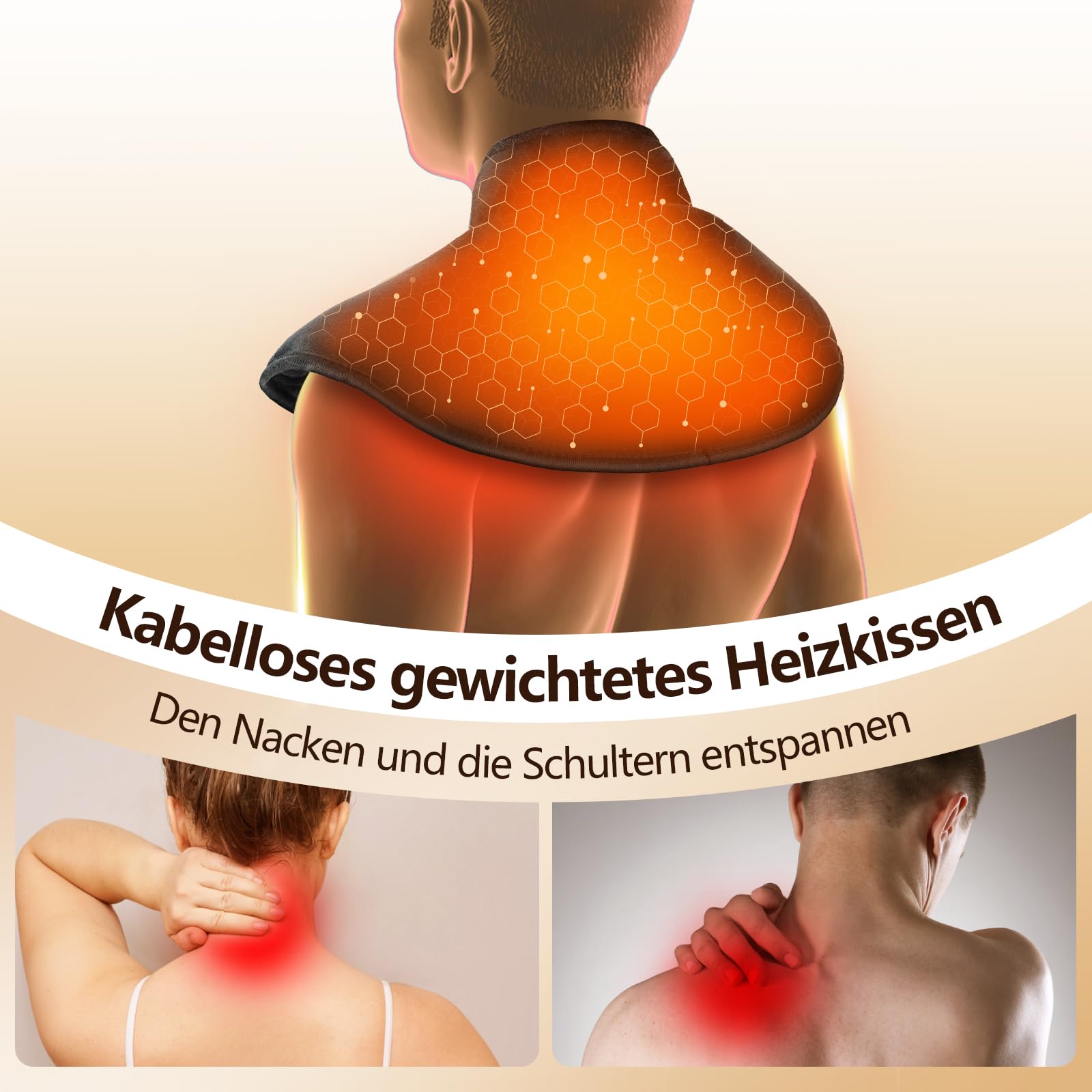 - Svērts dizains: 800 grami sīku lodīšu ir vienmērīgi sadalīti visā sildīšanas spilventiņā (produkta kopējais svars ir 1,1 kg). Tas var imitēt apskāvienu un glāstu sajūtu. Tas ne tikai labāk pieguļ kaklam un pleciem, bet arī nodrošina efektīvu siltumu, atslābina stīvus un nogurušus muskuļus un mazina spriedzi kaklā un plecos.