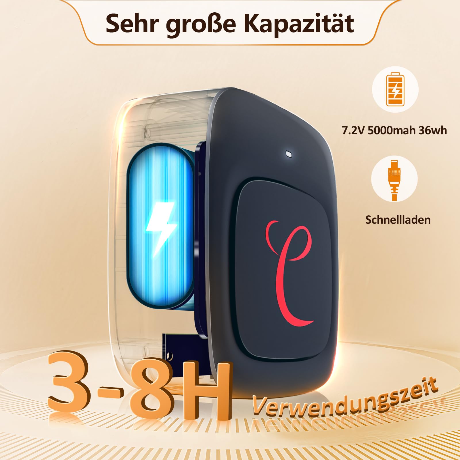 - Īpaši liela akumulatora ietilpība: Mūsu sildīšanas spilventiņš ir aprīkots ar ārkārtīgi ietilpīgu akumulatora ietilpību — 36 Wh. Pēc pilnīgas uzlādes to var lietot 3 līdz 8 stundas (ar automātiskās izslēgšanās funkciju). Jums nav jāuztraucas par to, ka akumulators izlādēsies pārāk ātri, un tas nav jāuzlādē tik bieži. Akumulators nav izņemams.