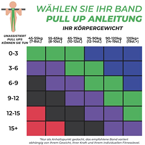 - PRETESTĪBAS LENTES IDEĀLAI PRETESTĪBAI — Katra pievilkšanās lente nodrošina vislabāko treniņu. Fitnesa joslu pretestība tiek rūpīgi pārbaudīta, lai jūs varētu soli pa solim uzlabot savu fizisko sagatavotību. Mūsu sarkanā pretestības lente piedāvā 7–15 kg pretestību un nodrošina, ka jūs apgūsiet muskuļu veidošanas vingrinājumus jau pēc dažiem atkārtojumiem.