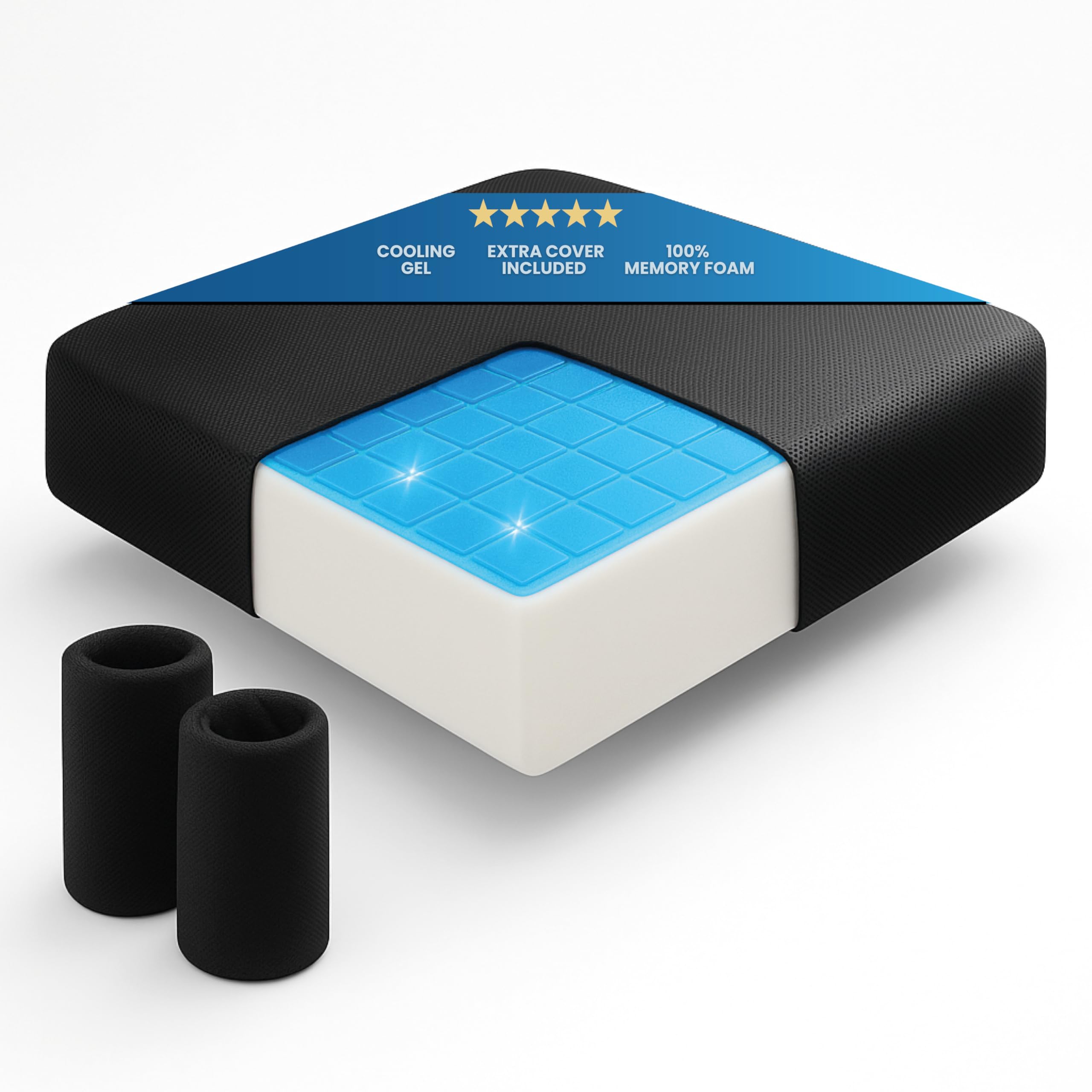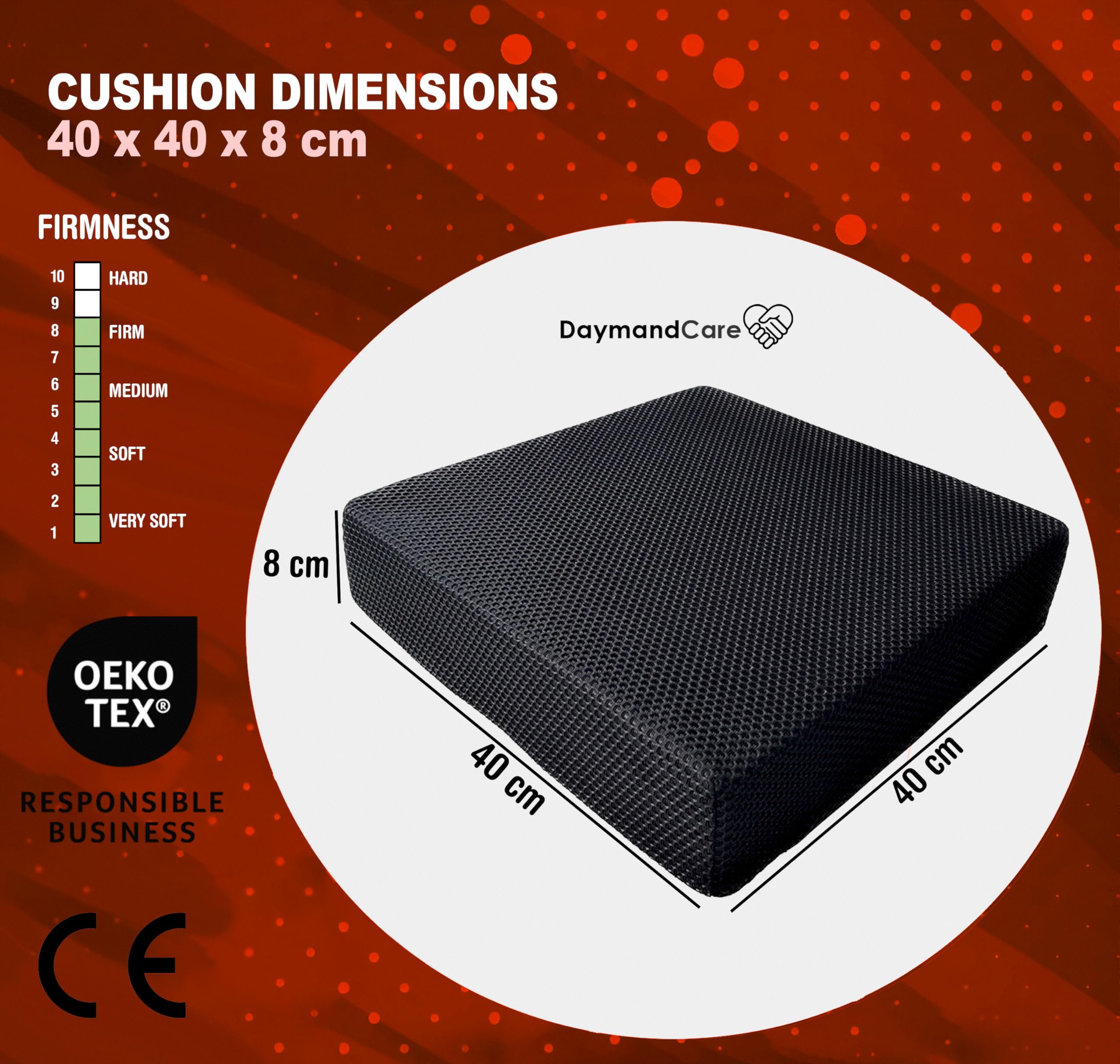 DaymandCare® | Pretizgulējumu sēdekļa spilvens ratiņkrēslā | Iekļauts papildu pārsegs | Ortopēdisks pretizgulējumu līdzeklis | Ortopēdisks sēdekļa spilvens | Decubitus sēdekļa spilvens | Viskoelastīgs + gels | spēļu krēsls