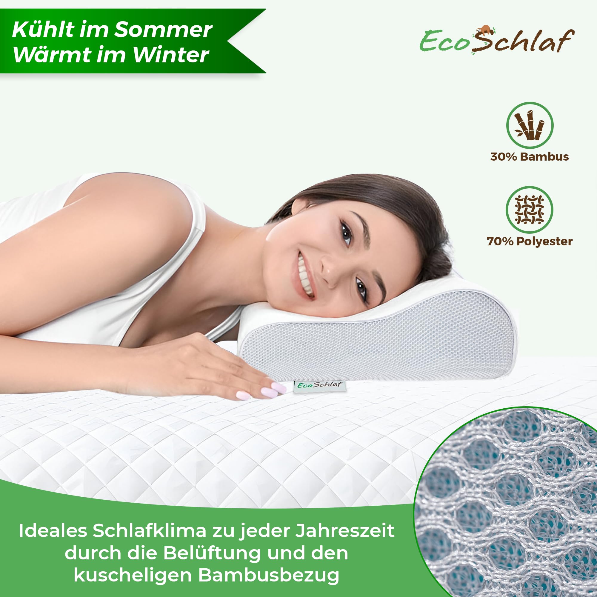 - ✔️ MAIGAS ATMIŅAS PUTAS – Mūsu īpaši izstrādātās EcoSchlaf atmiņas putas ļauj jums maigi iegrimt spilvenā un lieliski pielāgojas jums. Vai jums rodas iespaids, ka spilvens ir ļoti mīksts? Tad jūsu pirmais iespaids nav nepareizs, jo, lai samazinātu spiediena punktus un panāktu optimālu ķermeņa atbalstu, putām jābūt mīkstām un elastīgām. Tas piedāvā perfektu līdzsvaru starp maigumu un atbalstu veselīgai miega pozai un veicina relaksētu un mierīgu miegu.