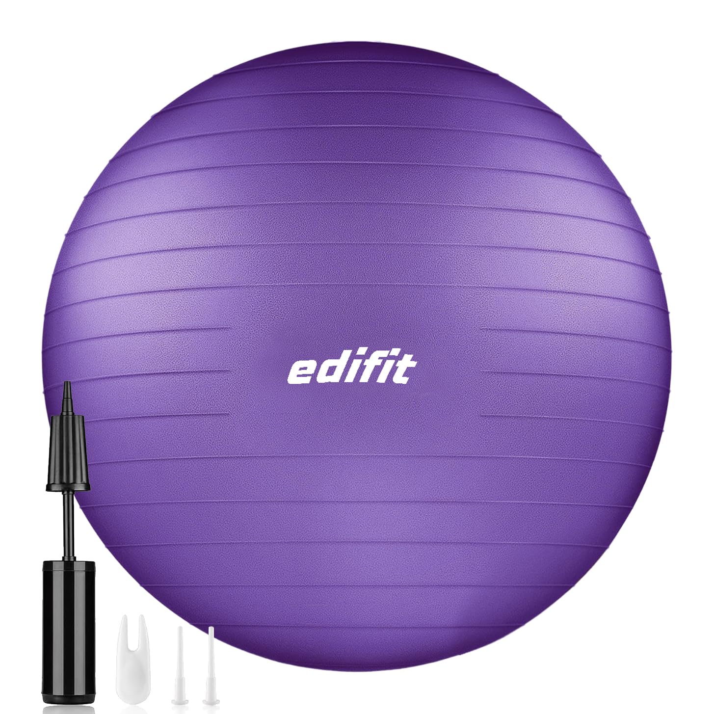 EDIFIT, vingrošanas bumba, 55, 65 un 75, Pezzi bumba, ieskaitot piepūtēju, Pilates bumba, sēžamā bumba, Pilates, jogas bumba, vingrošana (65 cm, violeta)