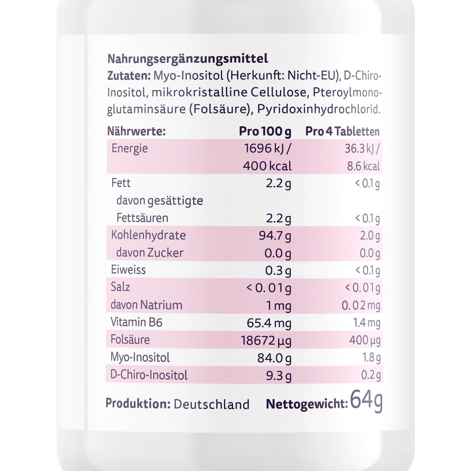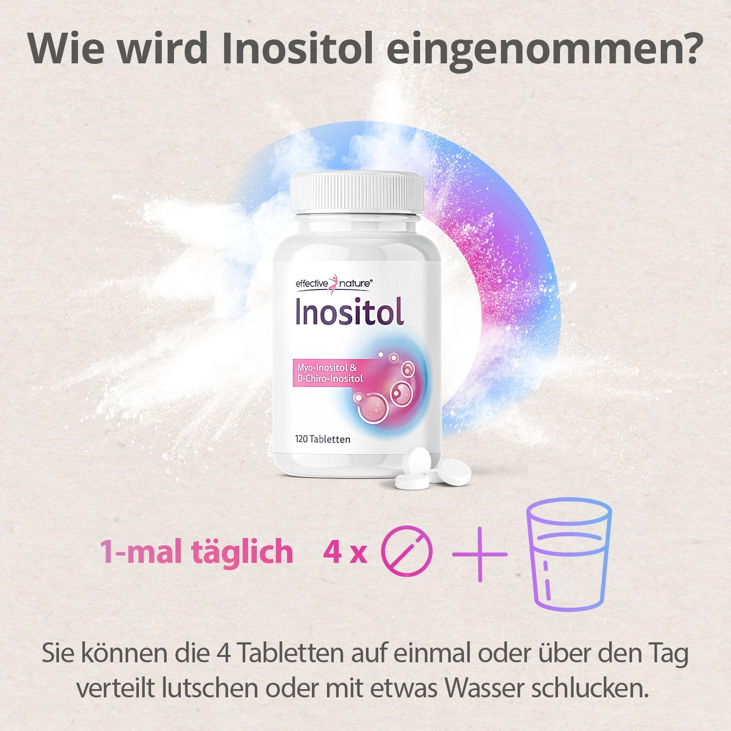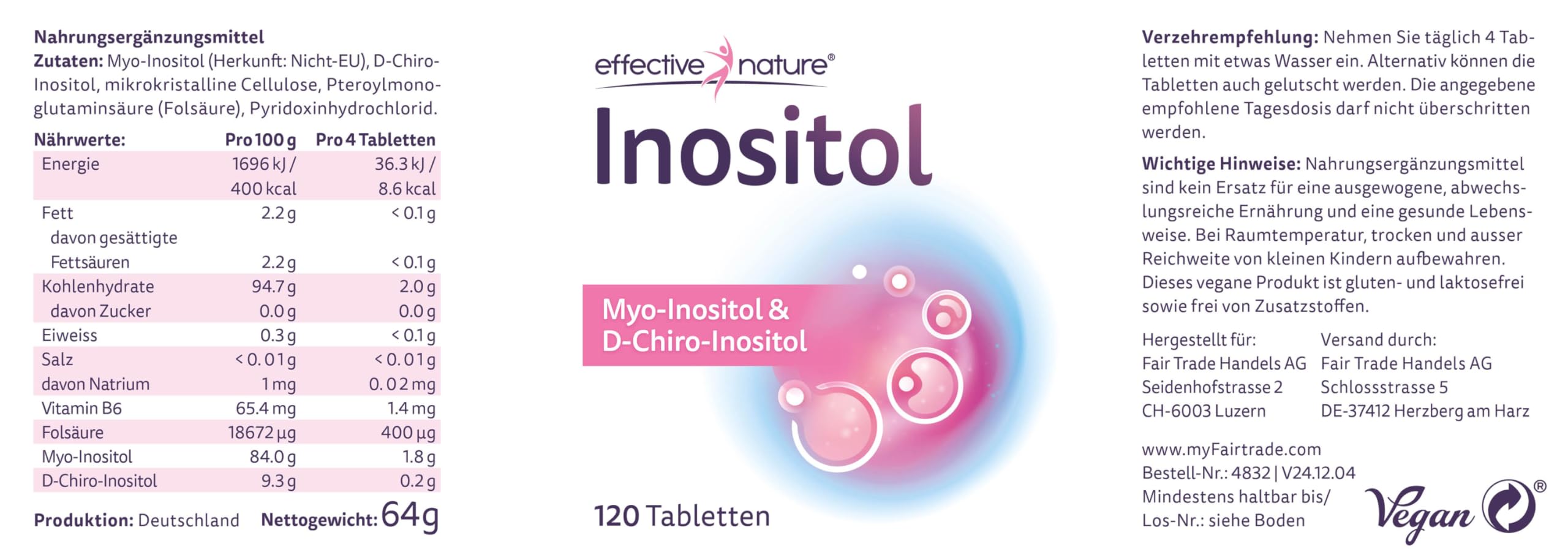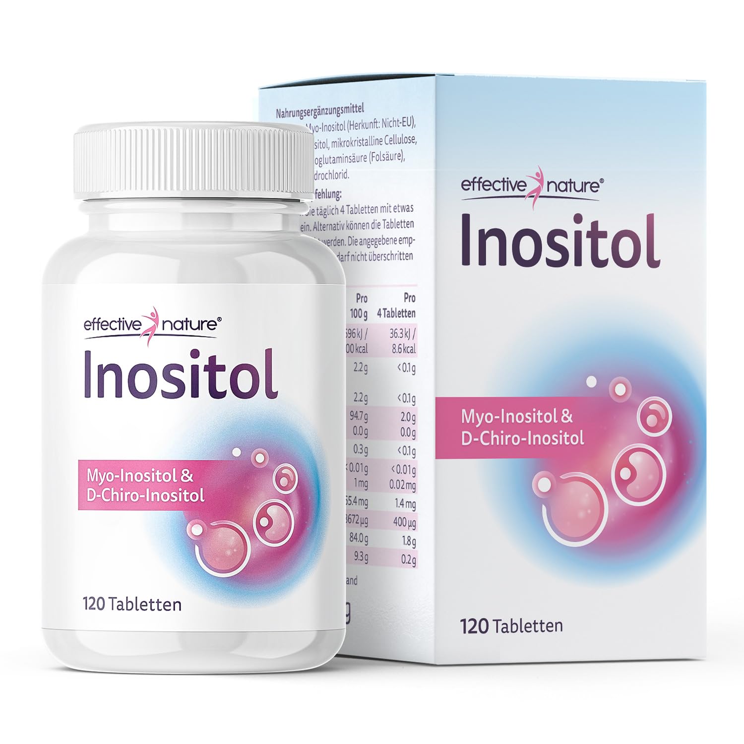 Effective Nature inozitola tabletes – mio- un D-hiro-inozitols optimālā attiecībā – ar 400 µg folskābes dienā – vegānas un bez piedevām – 120 tabletes