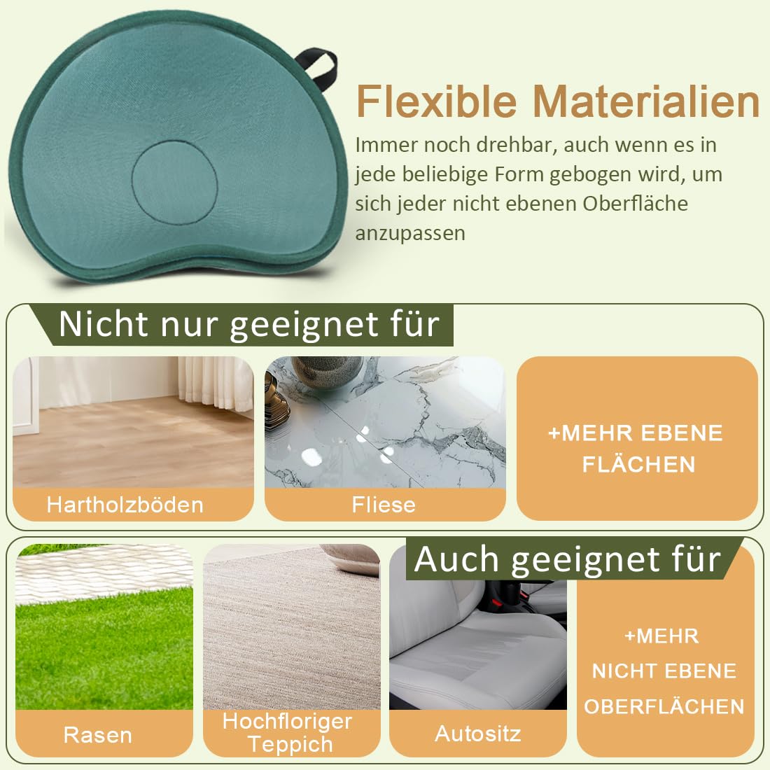 - 3. Augstas kvalitātes materiāli: Ehucon grozāmie diski ir izgatavoti no elastīgiem materiāliem, kas ļauj spilvenu saliekt jebkurā profilā, lai tas atbilstu jebkurai nelīdzenai virsmai, piemēram, cietkoksnes grīdām, flīzēm, laminātam un zema blīvuma paklājiem. Pasažieru drošībai gan grozāmā diska pamatne, gan grozāmā virsma ir pārklāta ar izturīgu, neslīdošu materiālu, lai palielinātu saķeri gan ar kājām, gan ar grīdu, un tā var brīvi griezties pat pie lielas slodzes.
