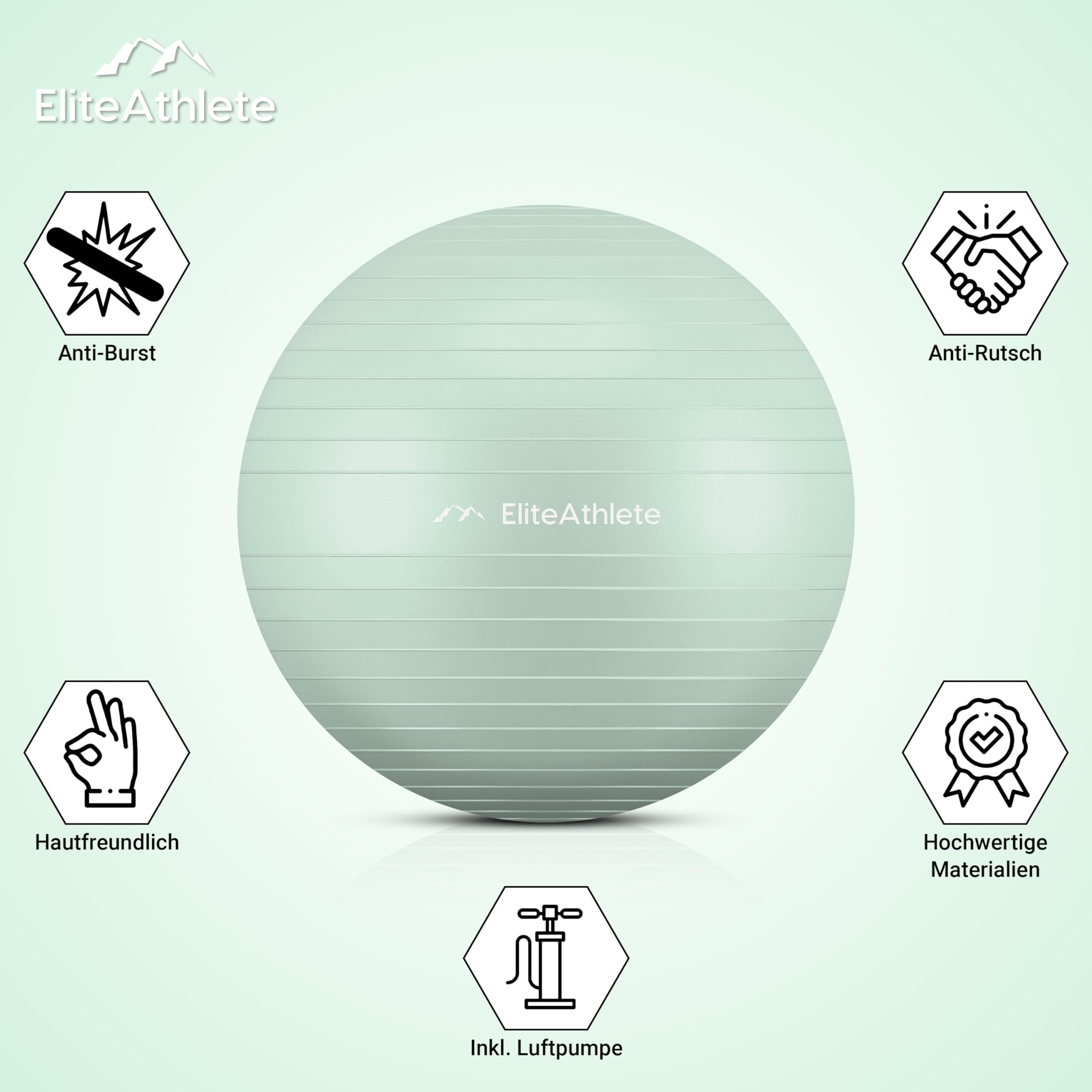 EliteAthlete vingrošanas bumba, sēdekļa bumba, ergonomiska, ar pretplīsuma sistēmu - Fitness Pilates grūtniecēm - Grūtniecības bumba, Fitnesa bumba, Jogas bumba - Jogas bumba 65 cm, ieskaitot Gaisa sūknis